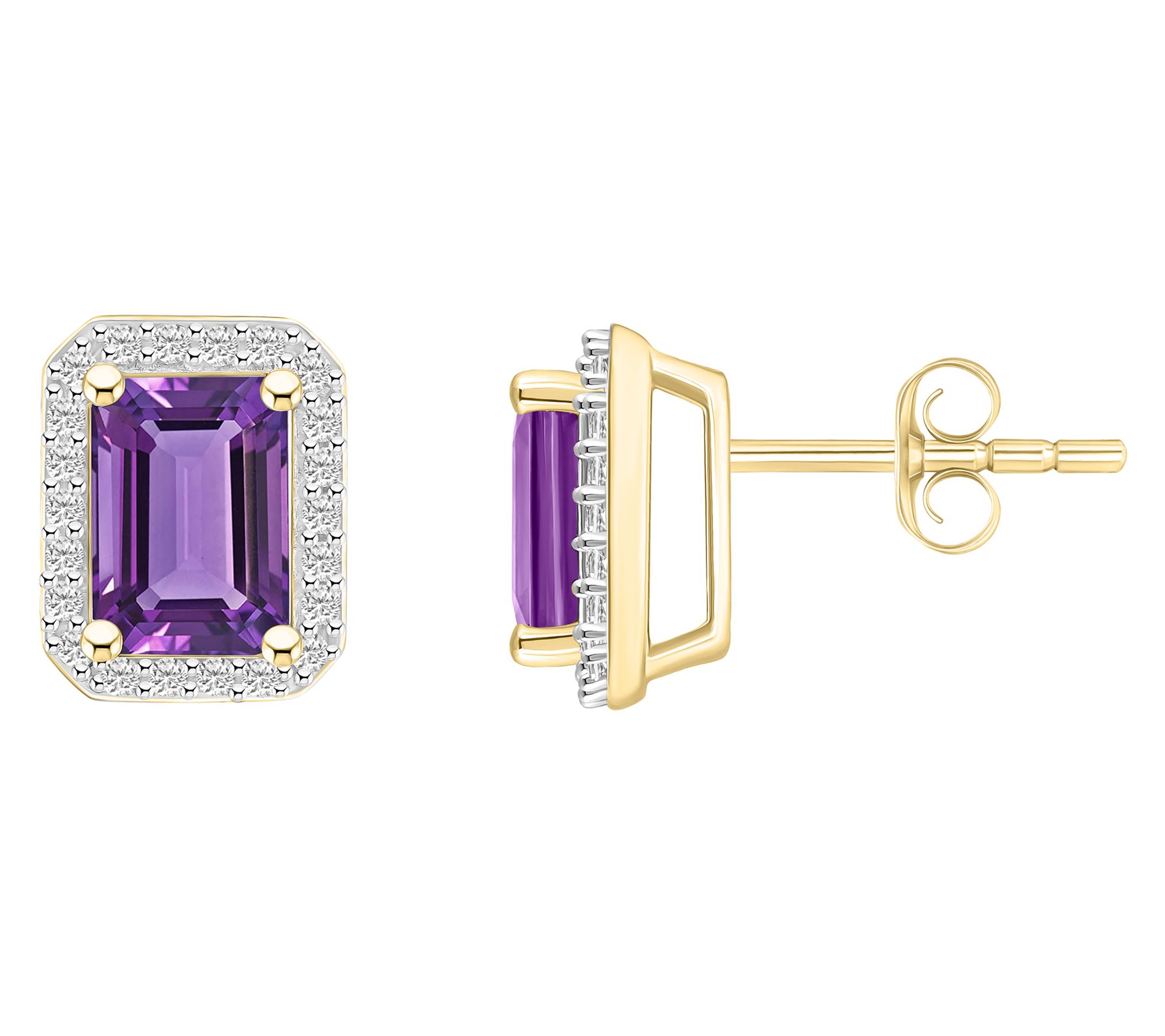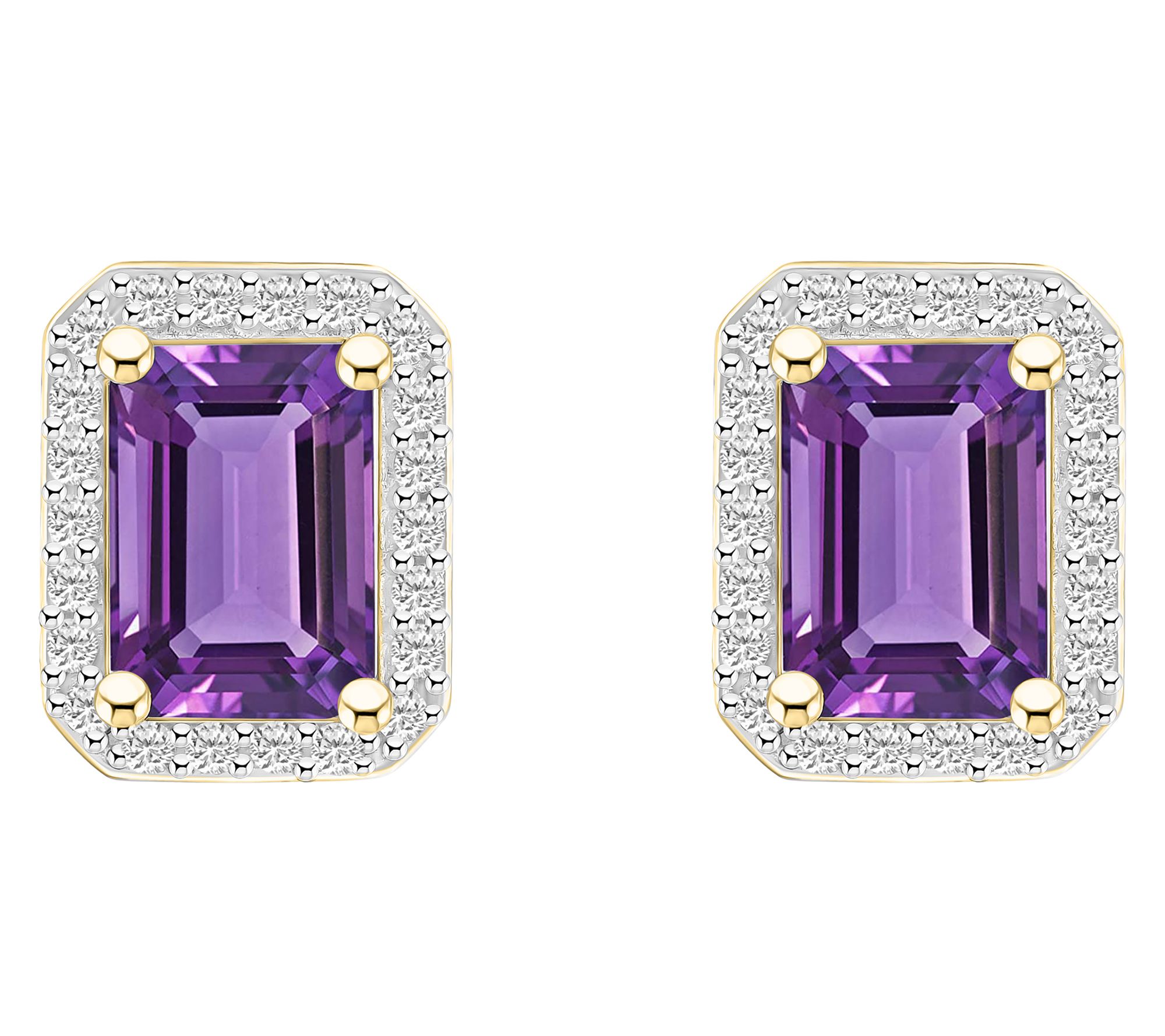 Affinity Gems Emerald Cut Gemstone Halo Stud Earrings, 10K