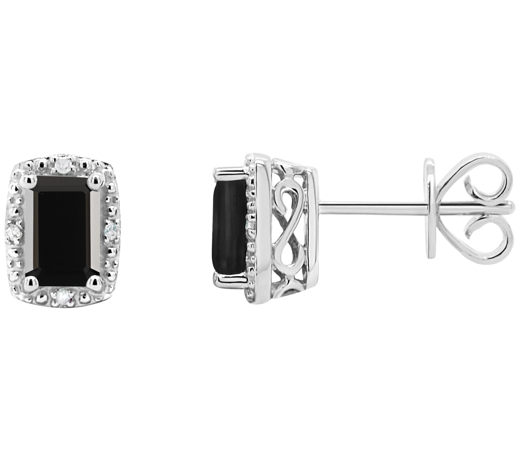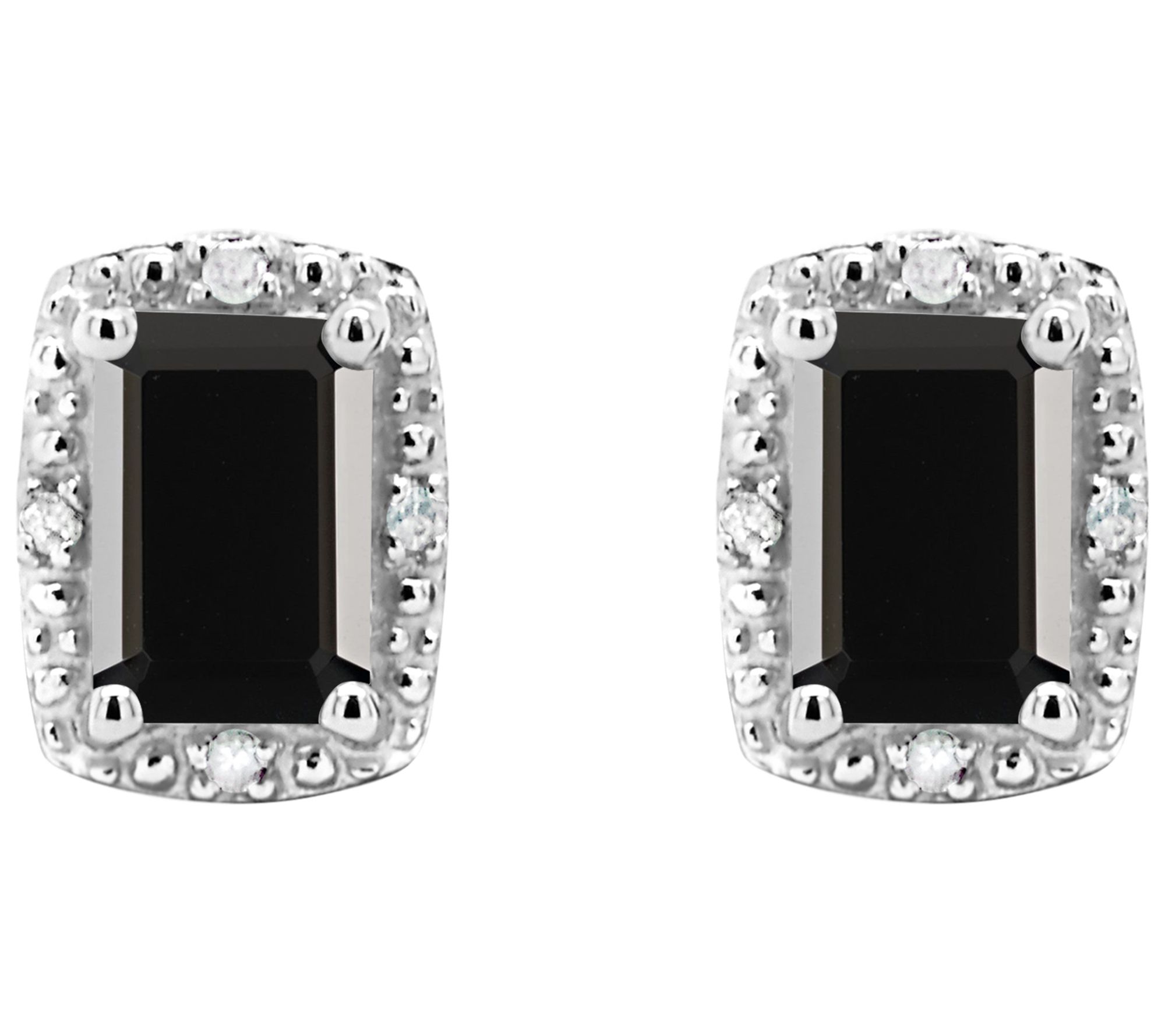 Affinity Gems Emerald Cut Onyx & Diamond Earrings, Sterling