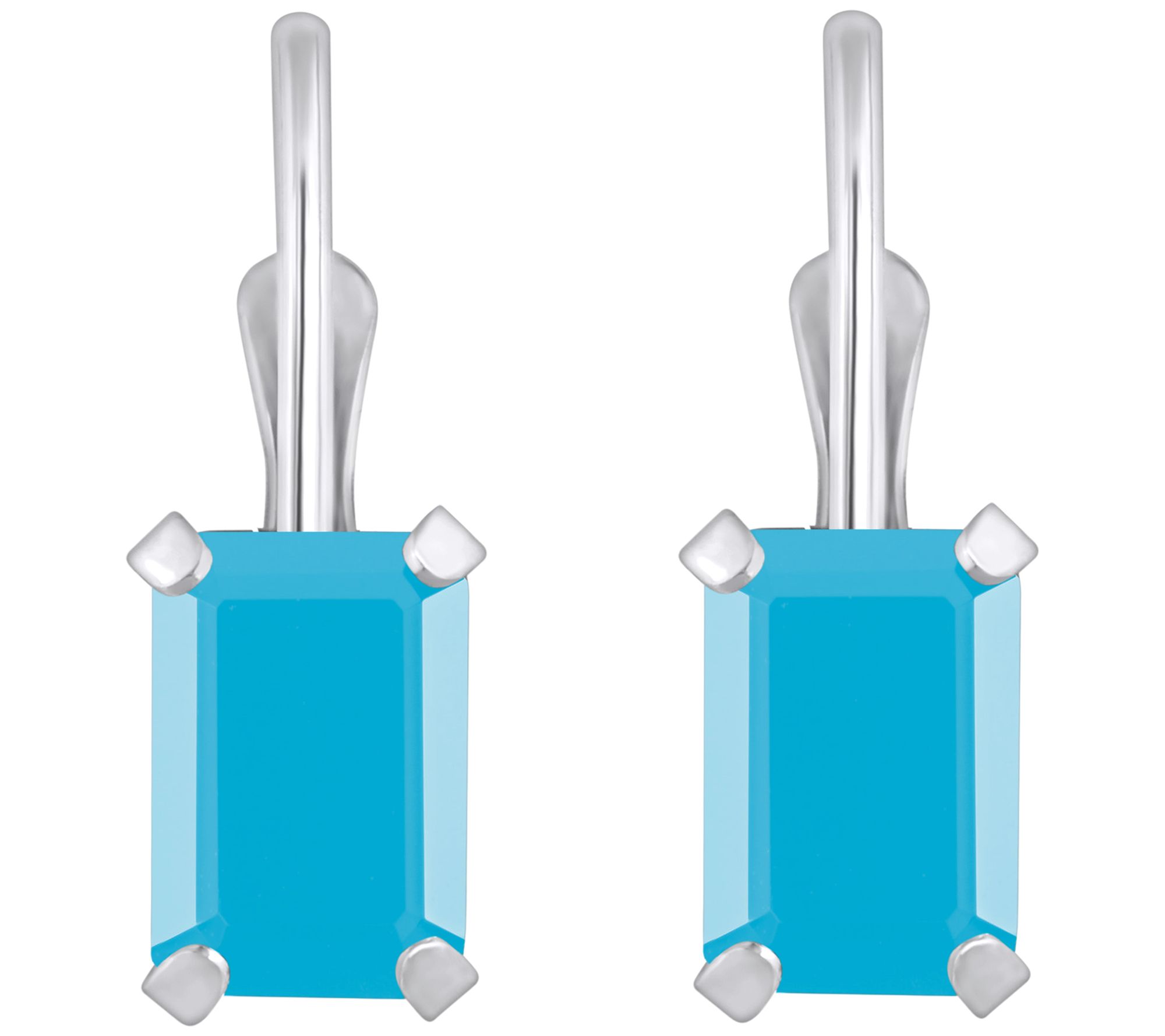 Affinity Gems Emerald Cut Turquoise Leverback Earrings, 10K