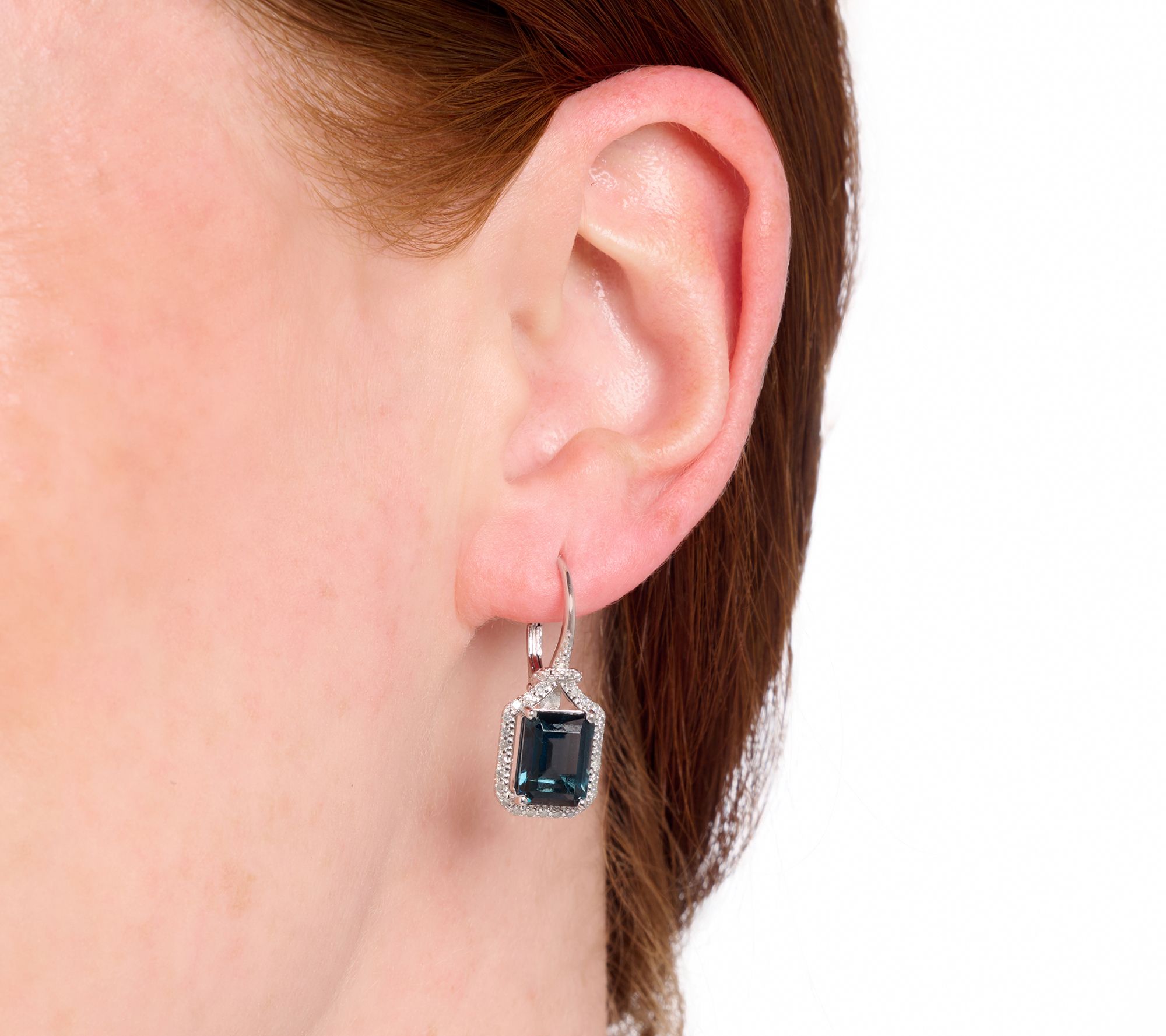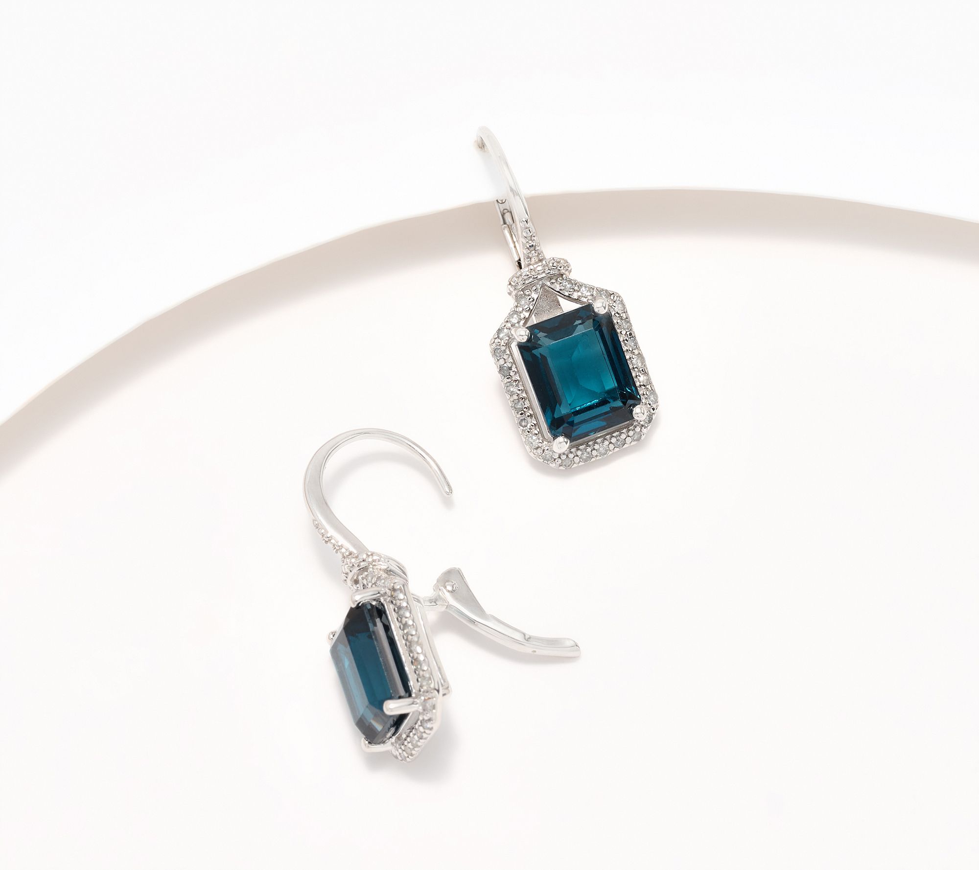 Whether you're stepping out to dine or dressing up for a celebration, these earrings bring a captivating blend of deep blue and sparkling white to your look. The emerald-cut London blue topaz command attention, while round white diamonds lend timeless shine. From Affinity® Gems.