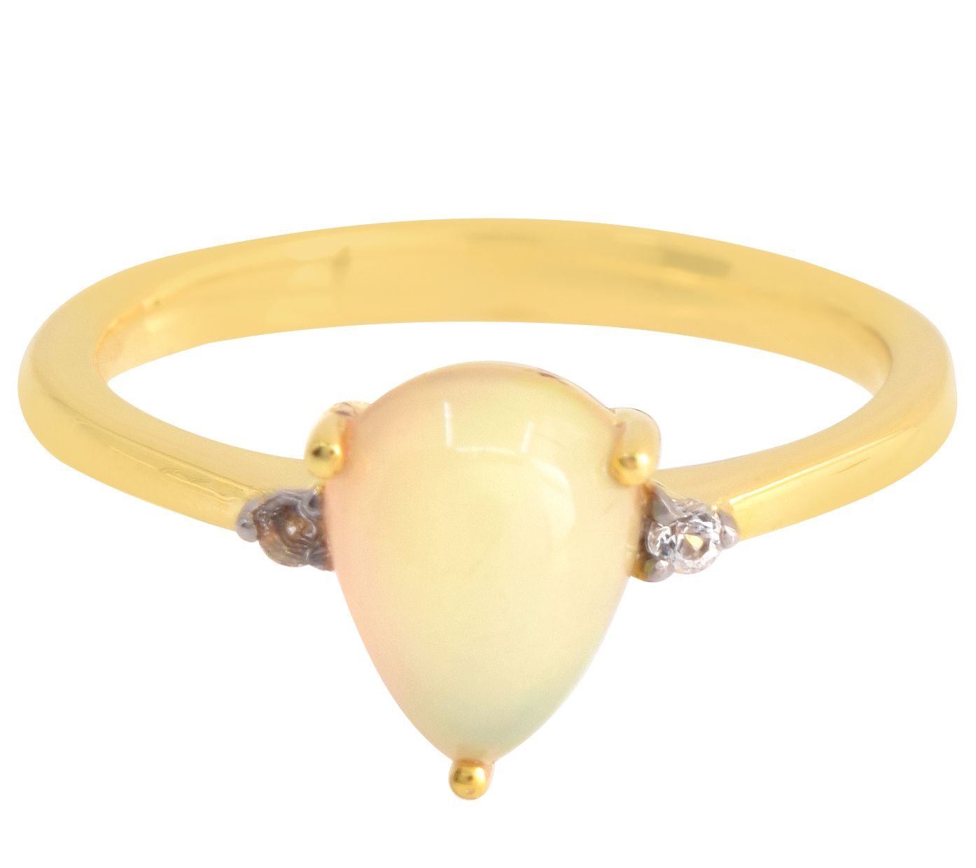 A shimmering Ethiopian opal cabochon, combined with subtle white topaz accents, make this ring an elegant addition to your everyday outfits. From Affinity® Gems.