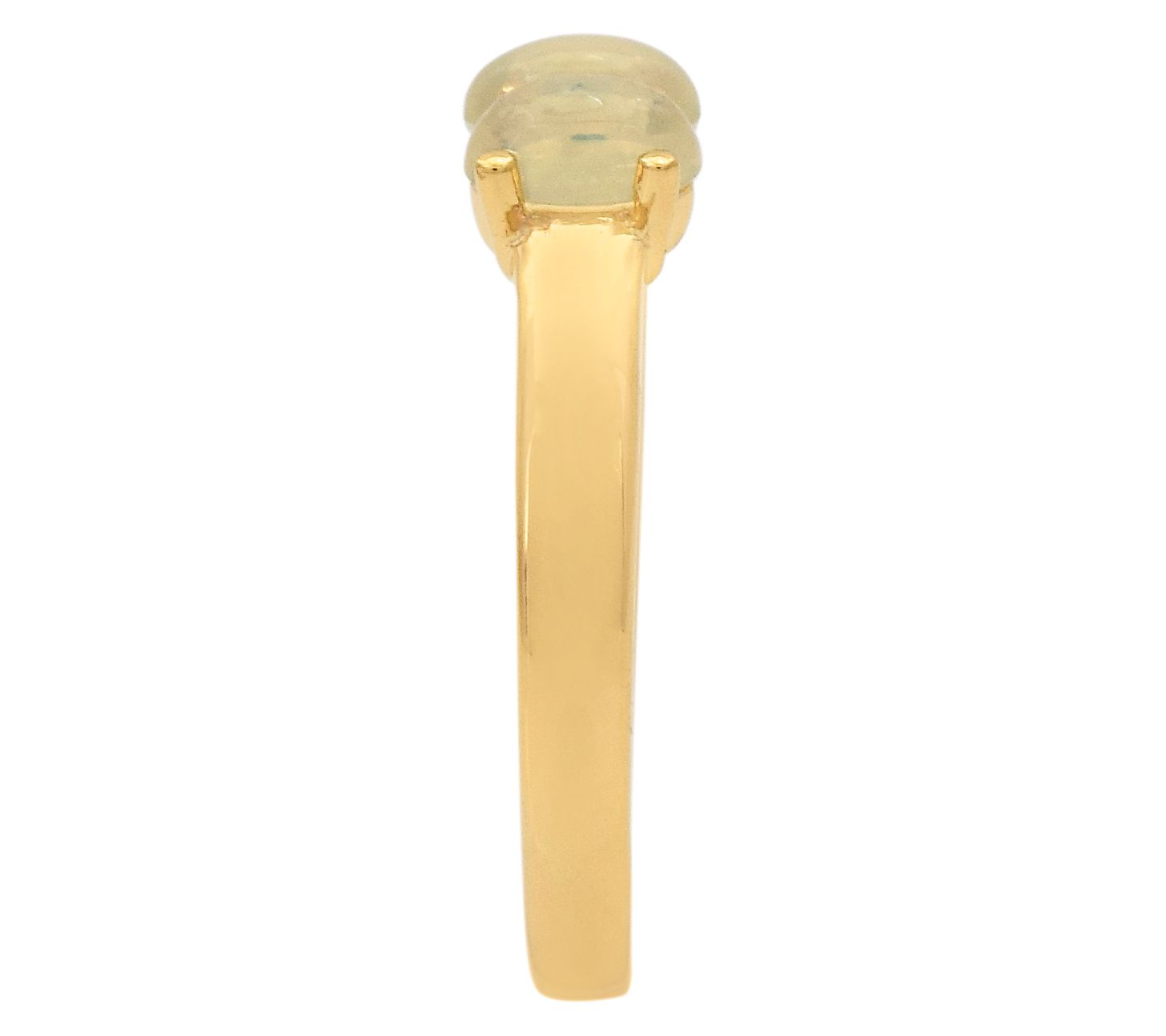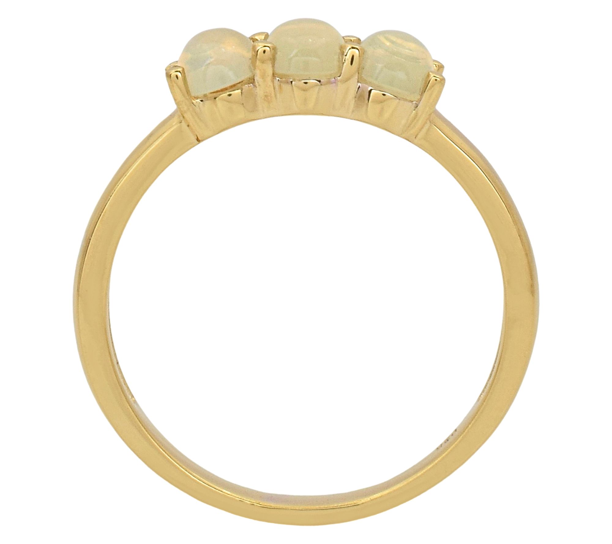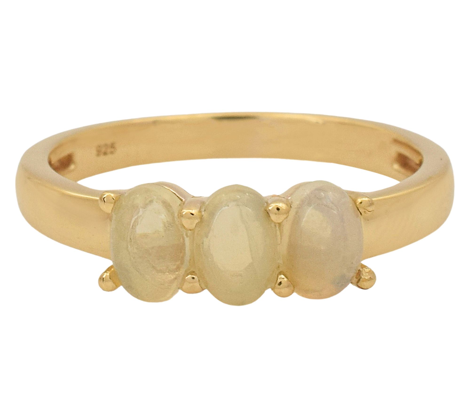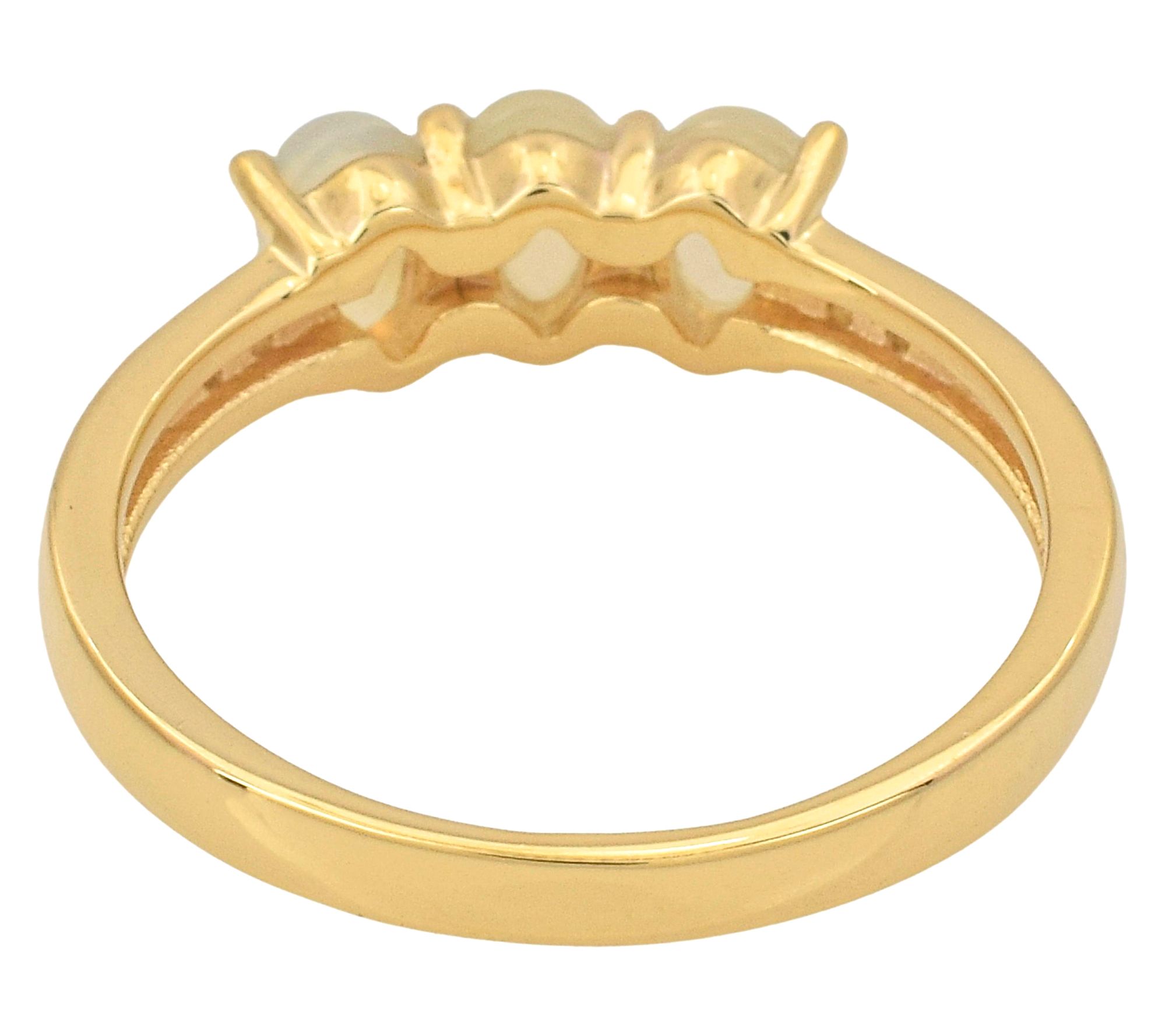 Let the gentle shimmer of Ethiopian opal inspire your next special occasion. Three glowing oval cabochon gemstones are set in a warm 14K gold-plated sterling silver band, creating a ring that's beautiful for daily wear or milestone celebrations. From Affinity® Gems.