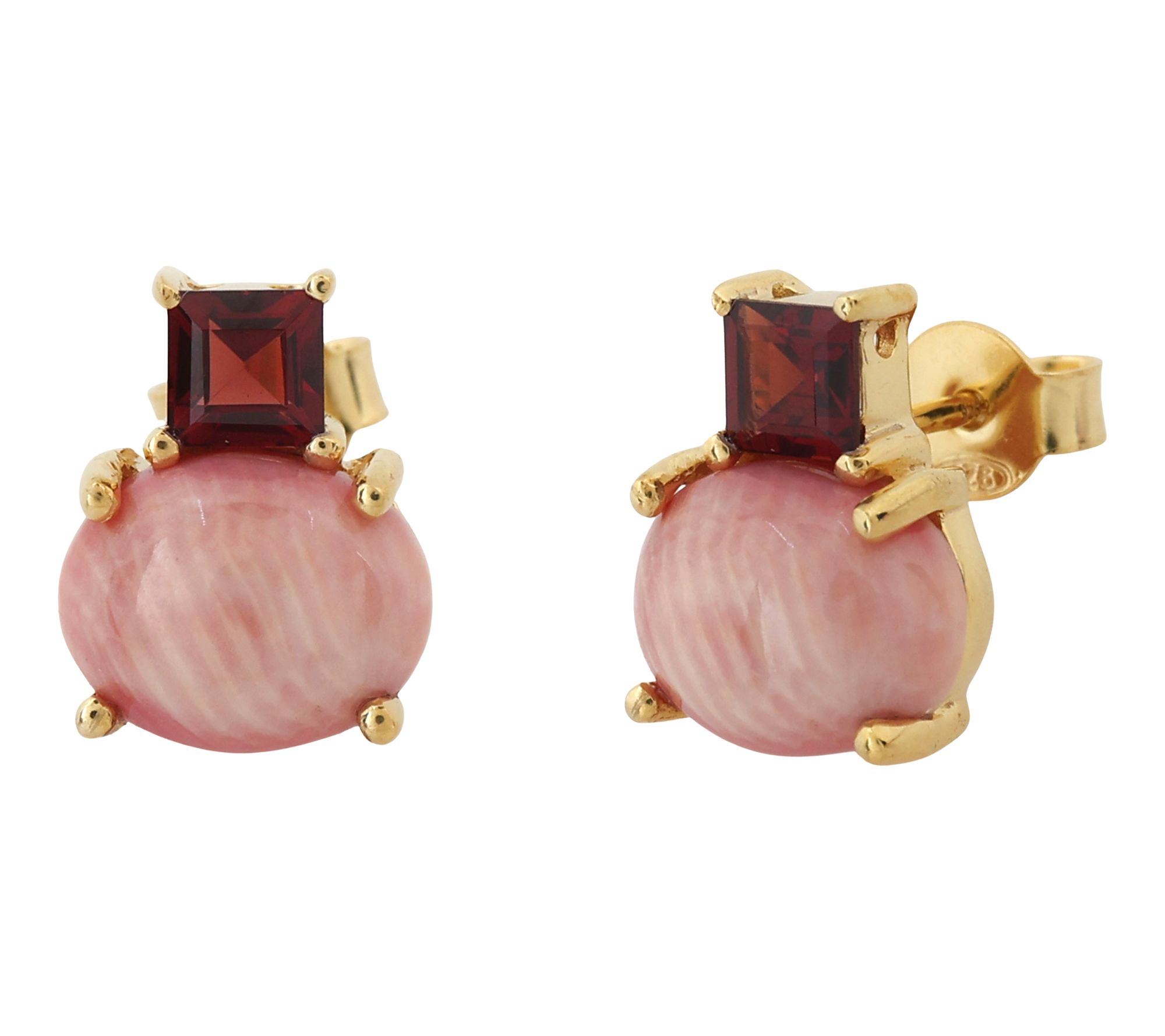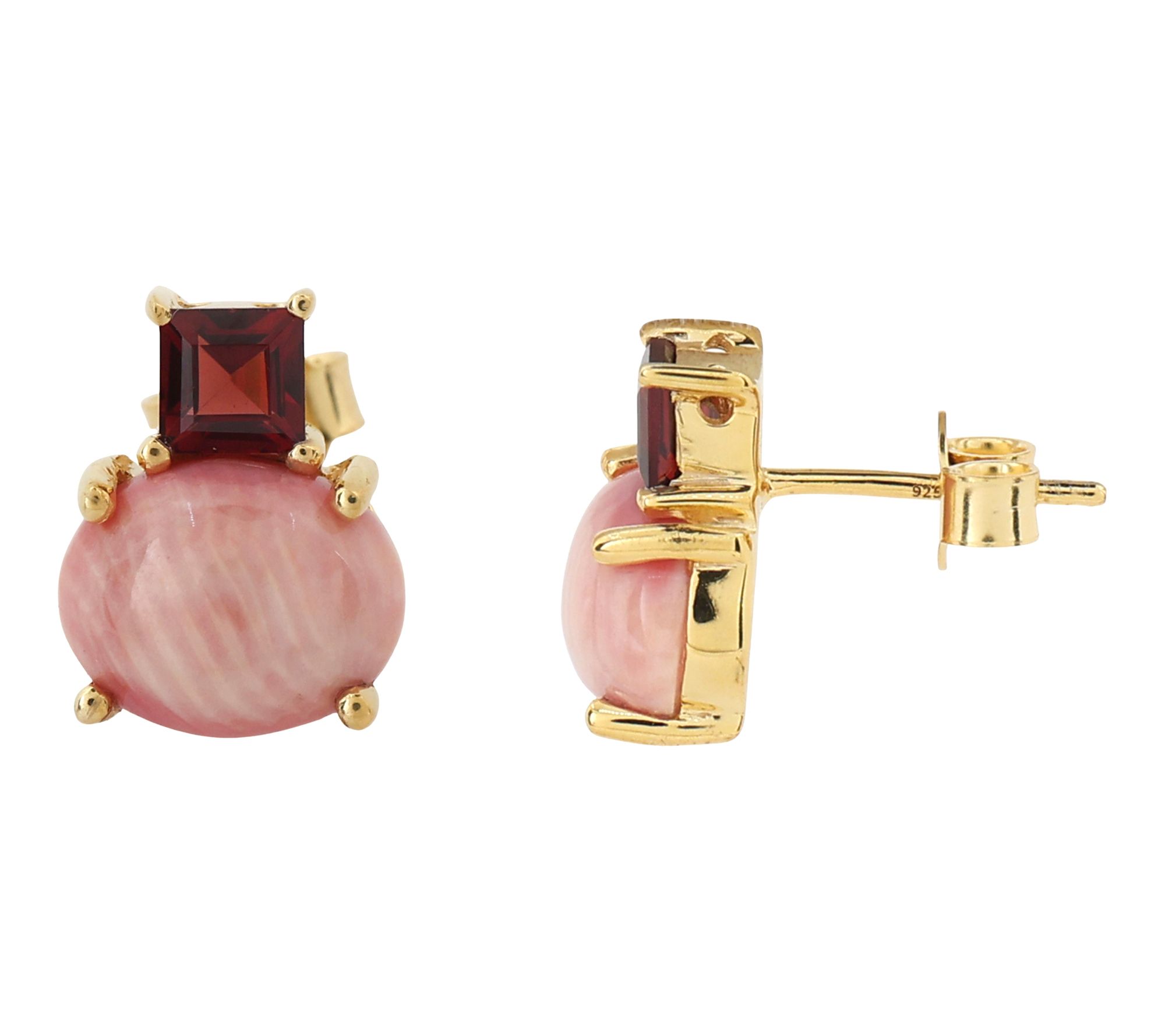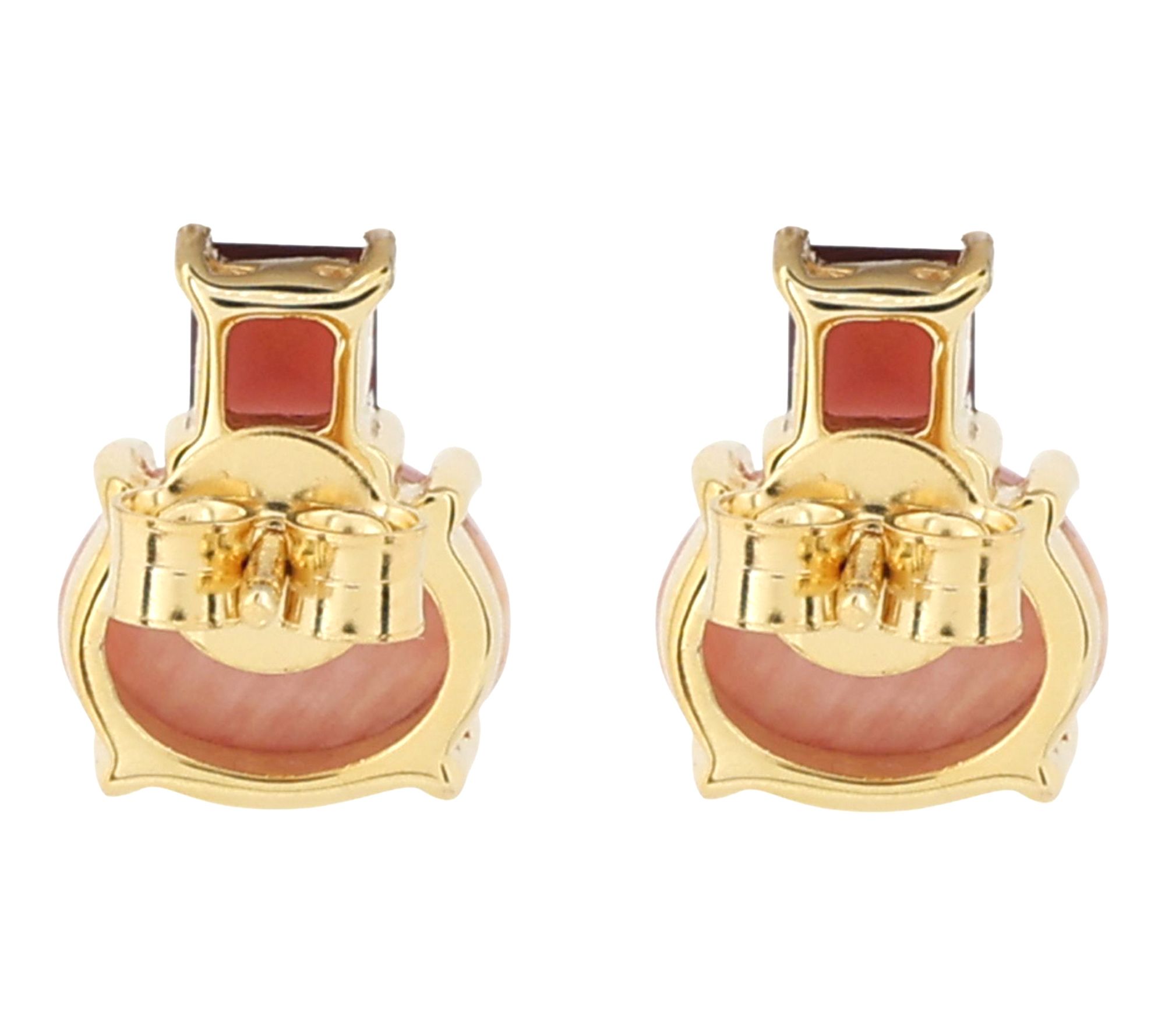 Bring subtle color and joy to your everyday with these stud earrings, blending the deep red of square-cut garnet and the soft blush of oval pink coral cabochons. Whether paired with a favorite blouse or adding just the right finishing touch for dinner out, this lively mix brings graceful charm to any look. From Affinity® Gems.