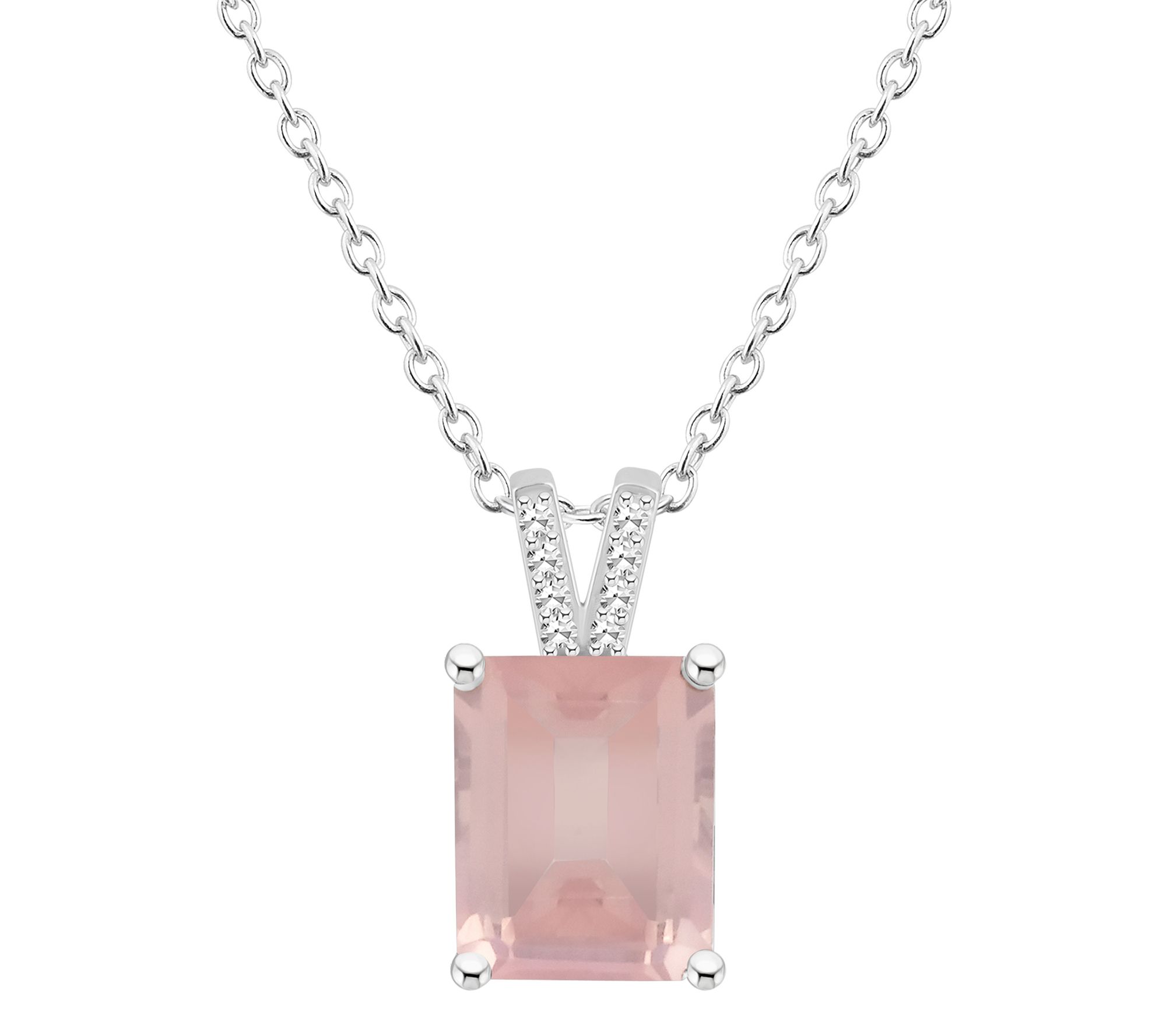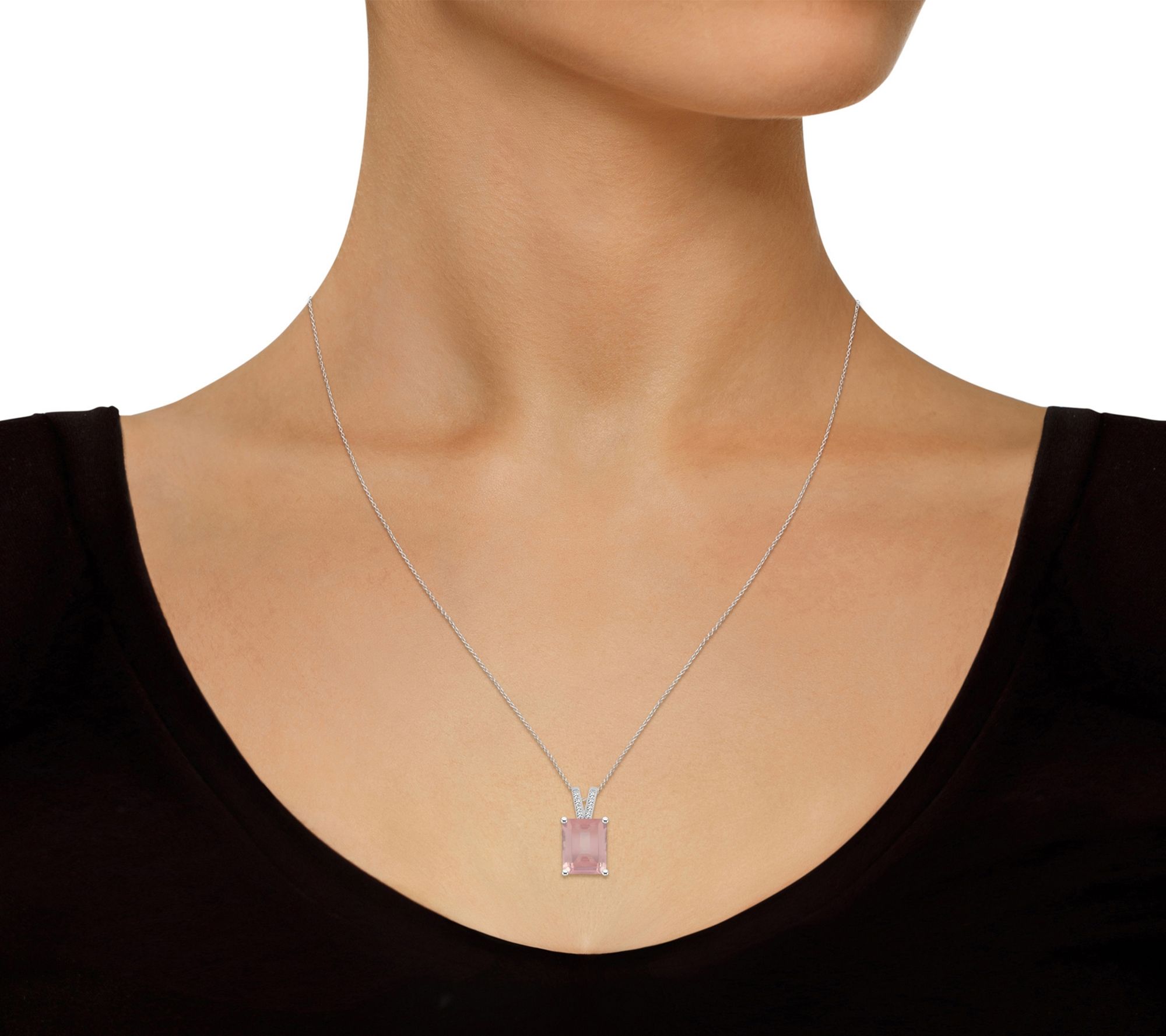 • Emerald-cut prong-set gemstone pendant with diamond accents
