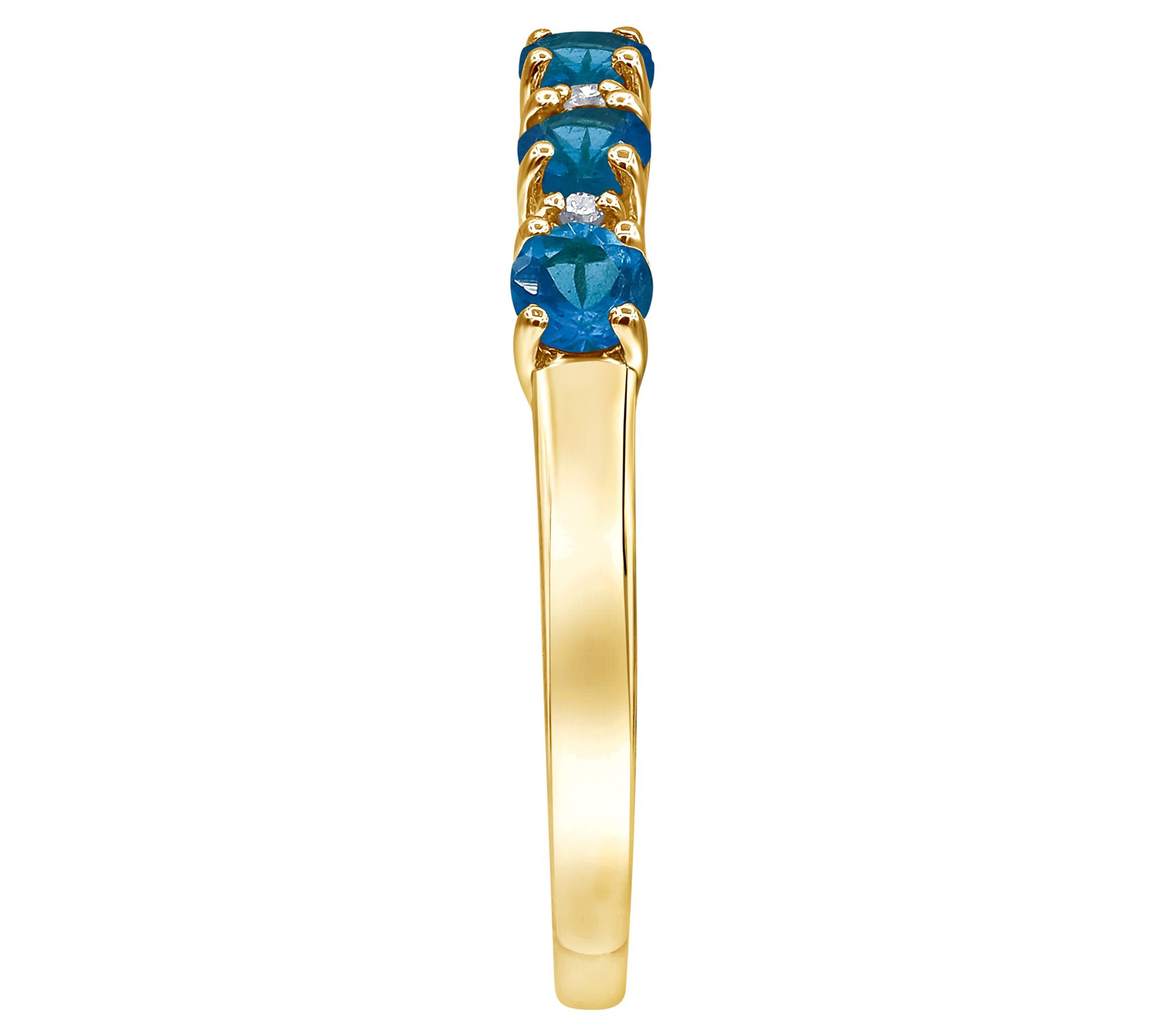 Discover the elegance of the Affinity Gems round-cut five-stone gemstone and diamond band ring. Crafted in sterling silver with 14K gold plating, this captivating piece features alternating prong-set gemstones and diamond accents. From Affinity® Gems.