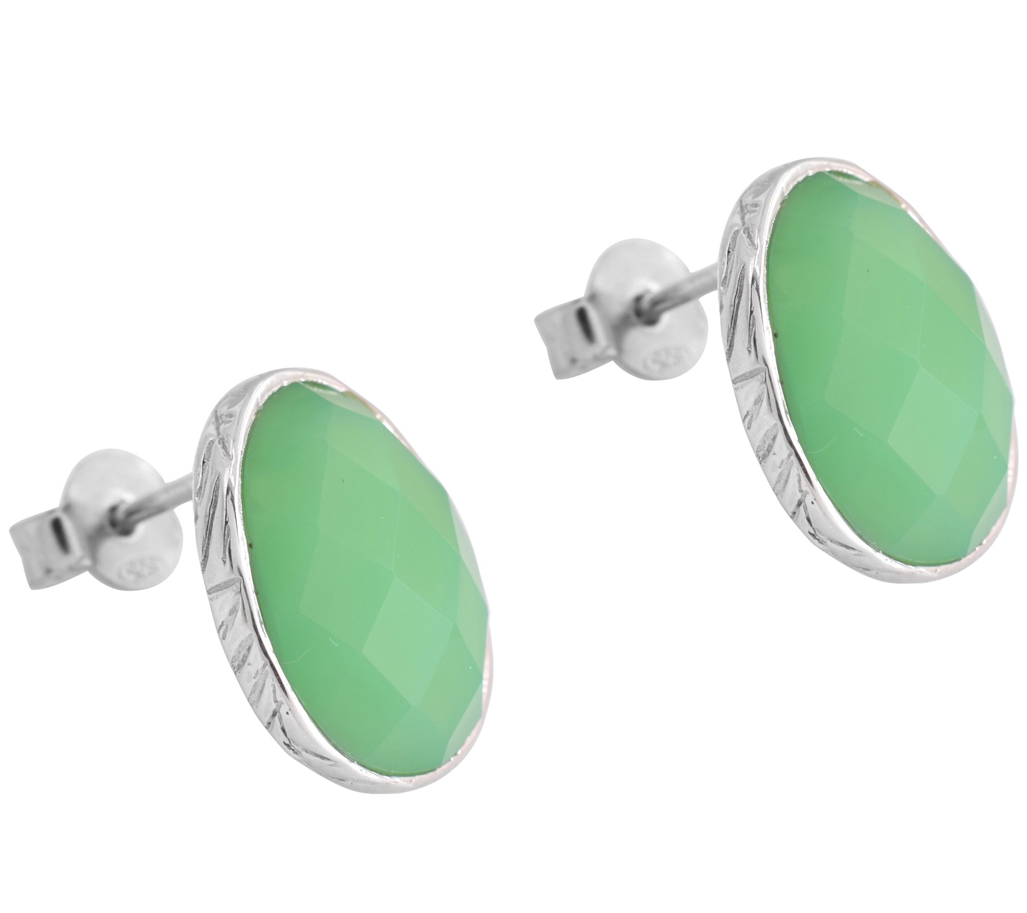 Any time of year will feel like spring when you don these chic green chalcedony stud earrings. The cheery gemstones are beautifully set in platinum-plated sterling silver for a glam finish. From Affinity® Gems.