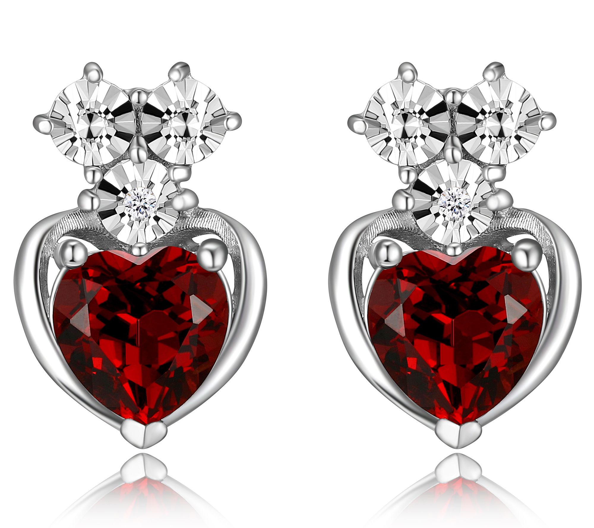 Affinity Gems Heart Garnet & Diamond Earrings, Sterling