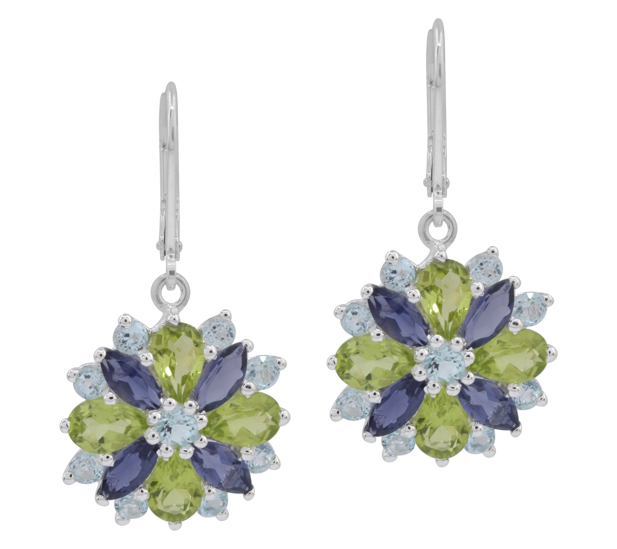Add a splash of color to any outfit with these stunning drop earrings, featuring a iolite, blue topaz, and peridot gemstones. Perfect for adding a touch of elegance to your evening wear or brightening up your daily look. From Affinity® Gems.