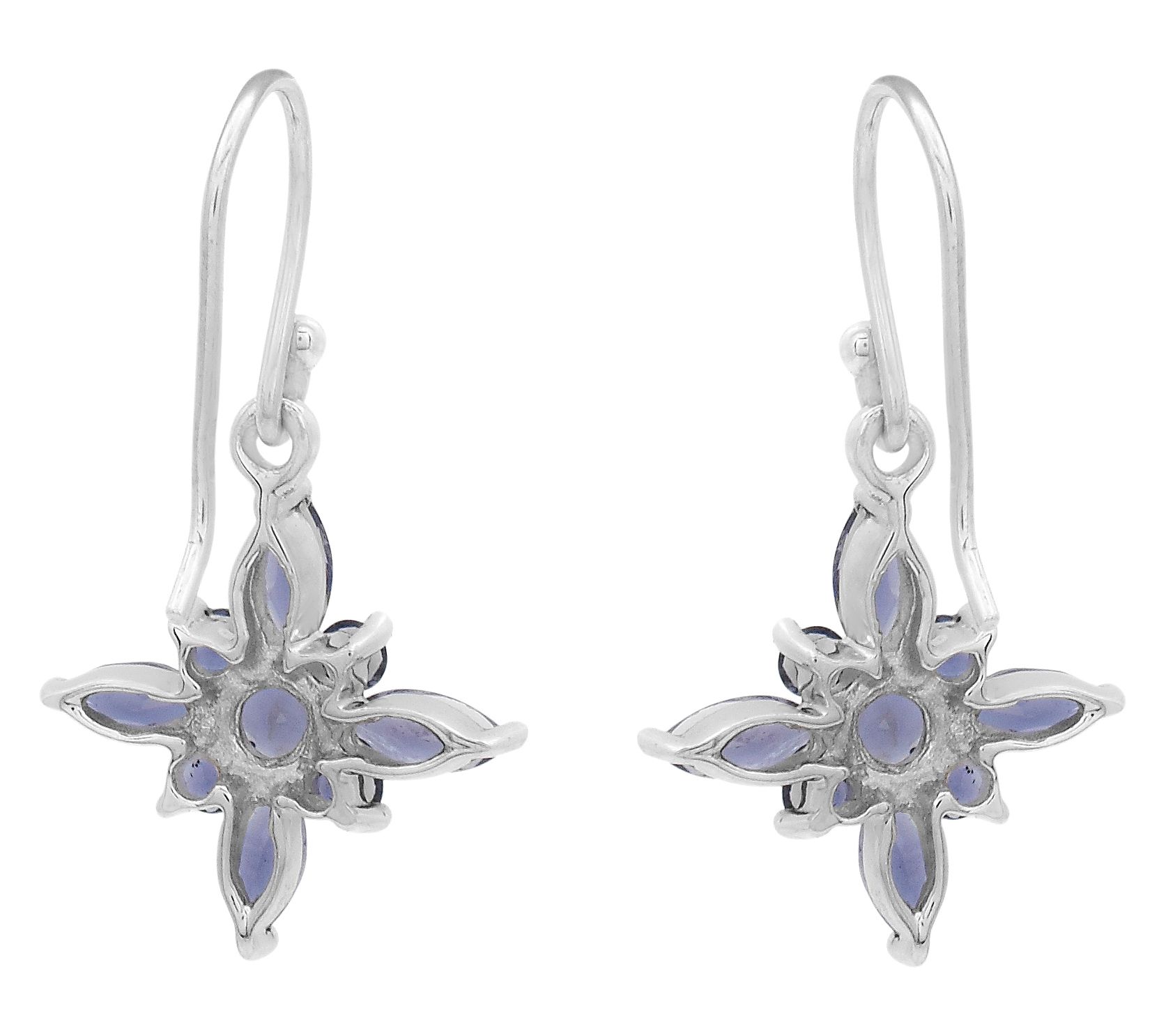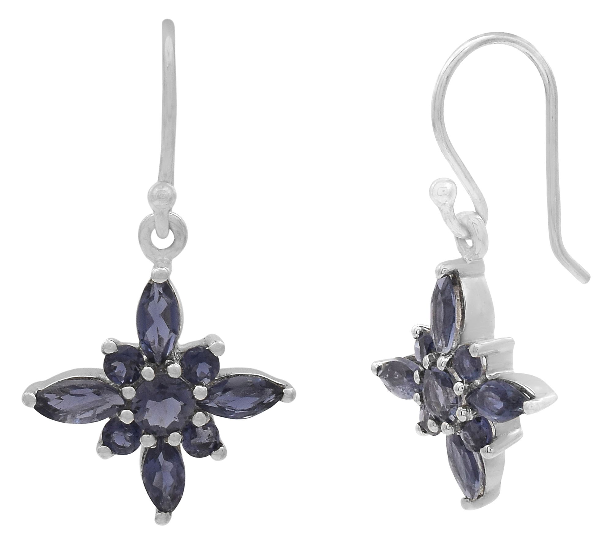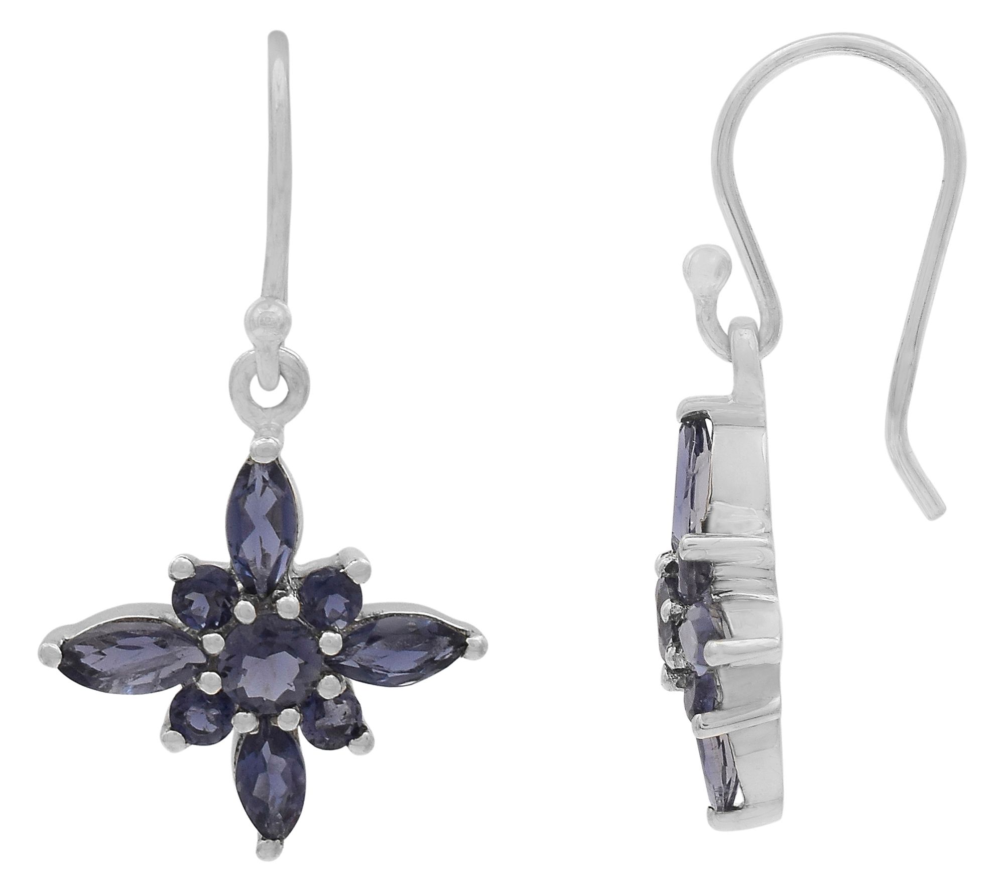 Dangling floral design; round and marquise, prong-set iolite gemstones
