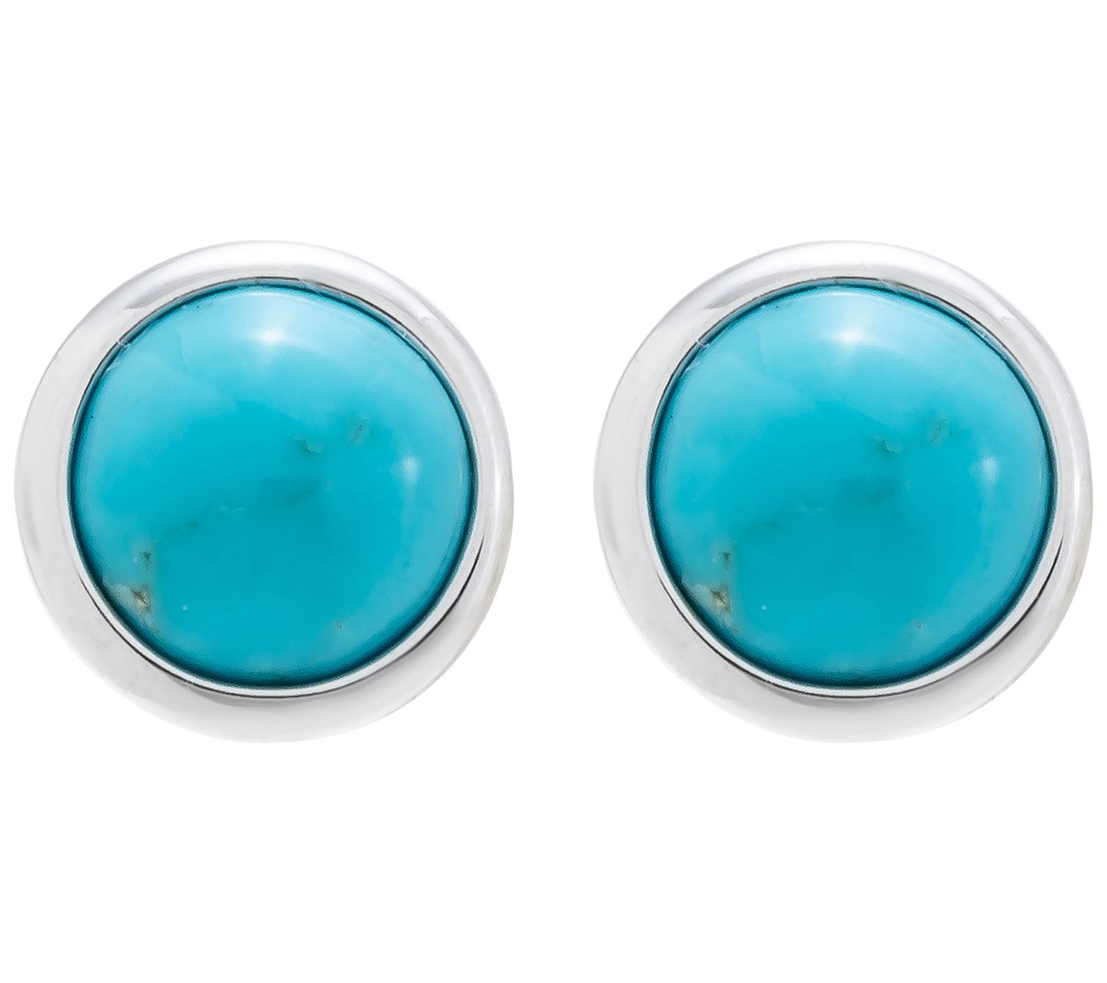 • Round bezel-set Kingman turquoise cabochons