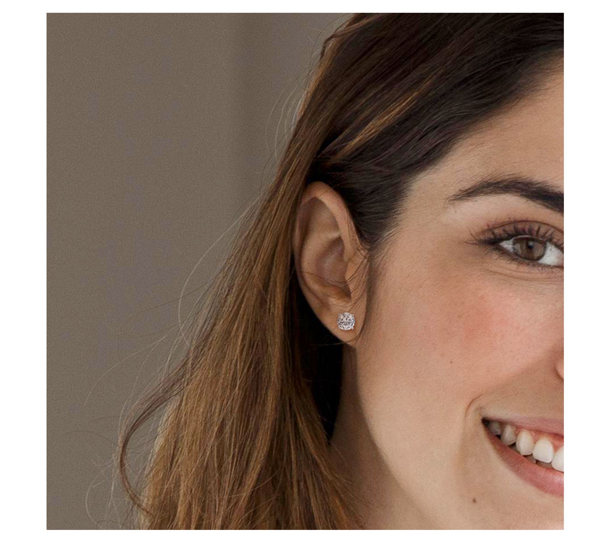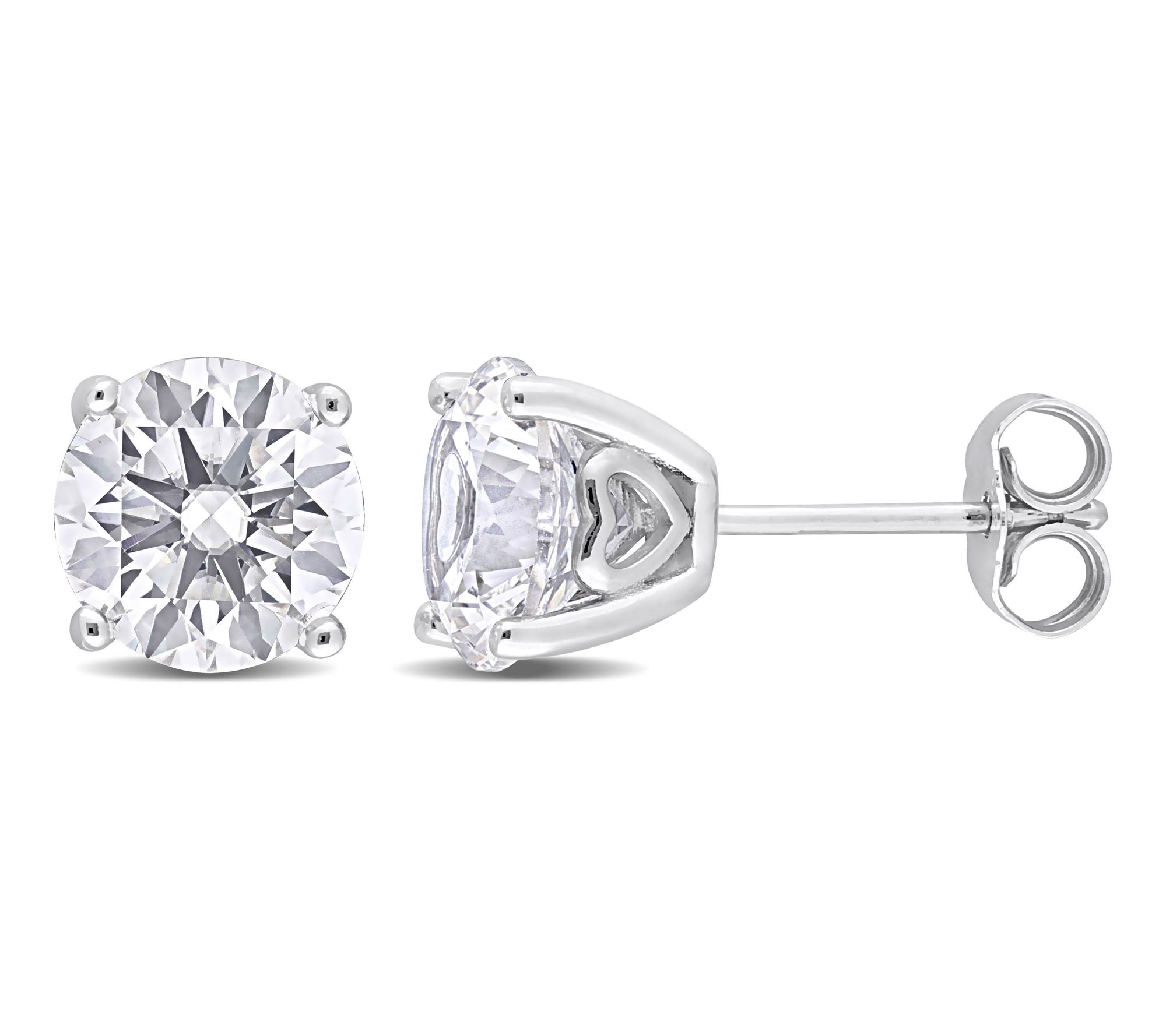 • Round-cut, prong-set lab-created white sapphire in stud design
