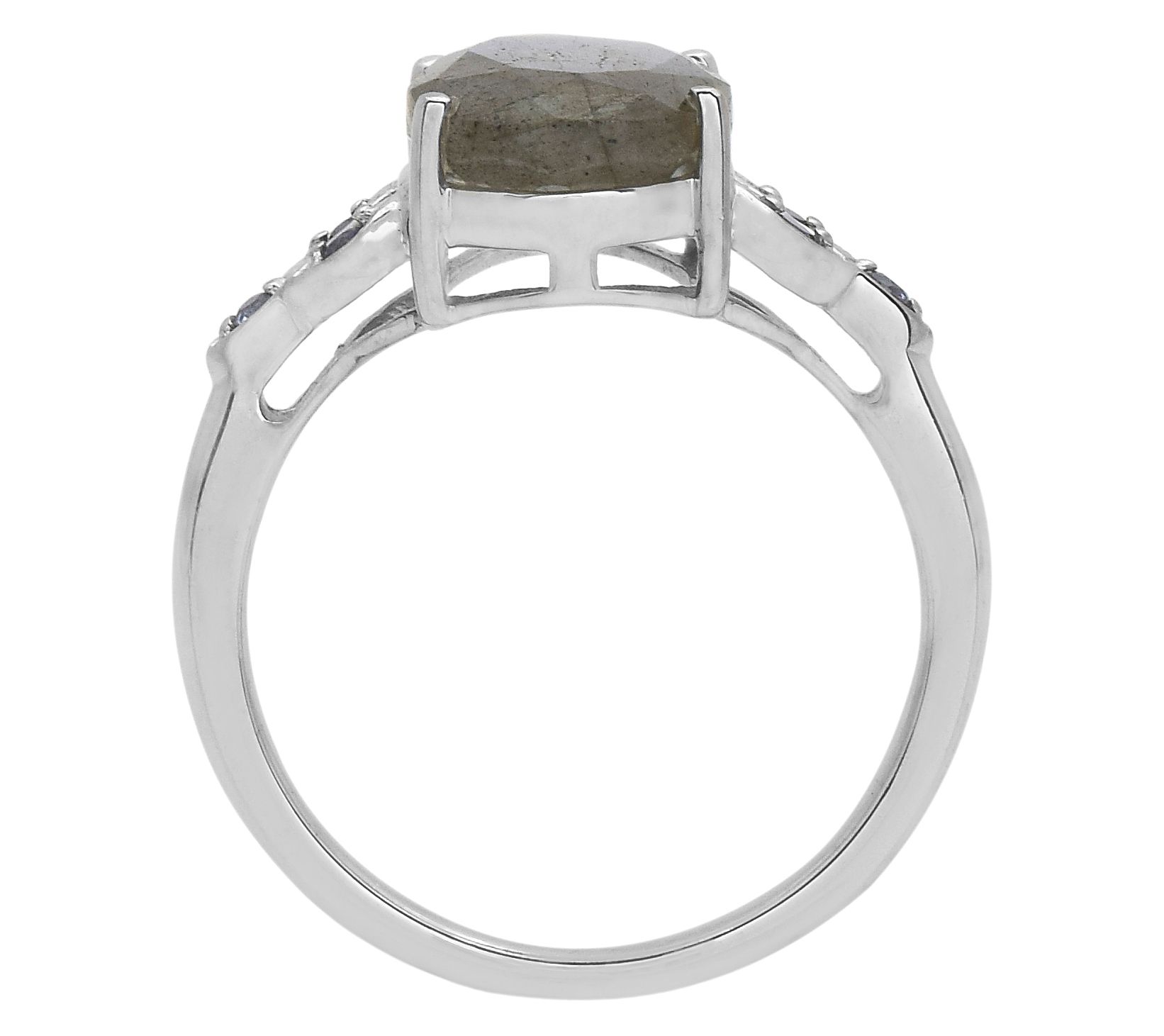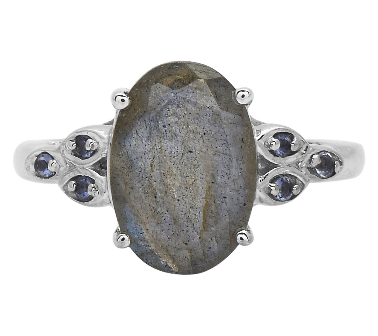 Let your look glow with iridescent allure -- this signet ring captures every shifting shade with a luminous labradorite centerpiece, while subtle iolite accents add a hint of cool blue contrast. Whether heading to brunch or dressing up for the evening, this sterling silver style makes a striking statement that works from day to night. From Affinity® Gems.