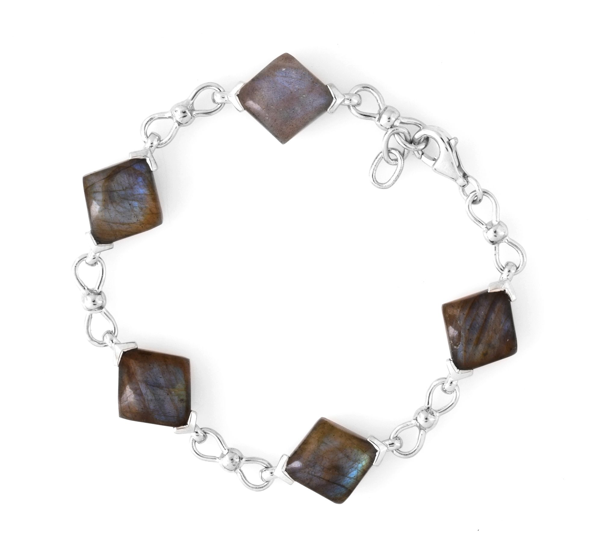 Shimmering labradorite cabochons set in platinum-plated sterling silver give this bracelet a stunning fusion of earthy charm and glam sophistication. From Affinity® Gems.