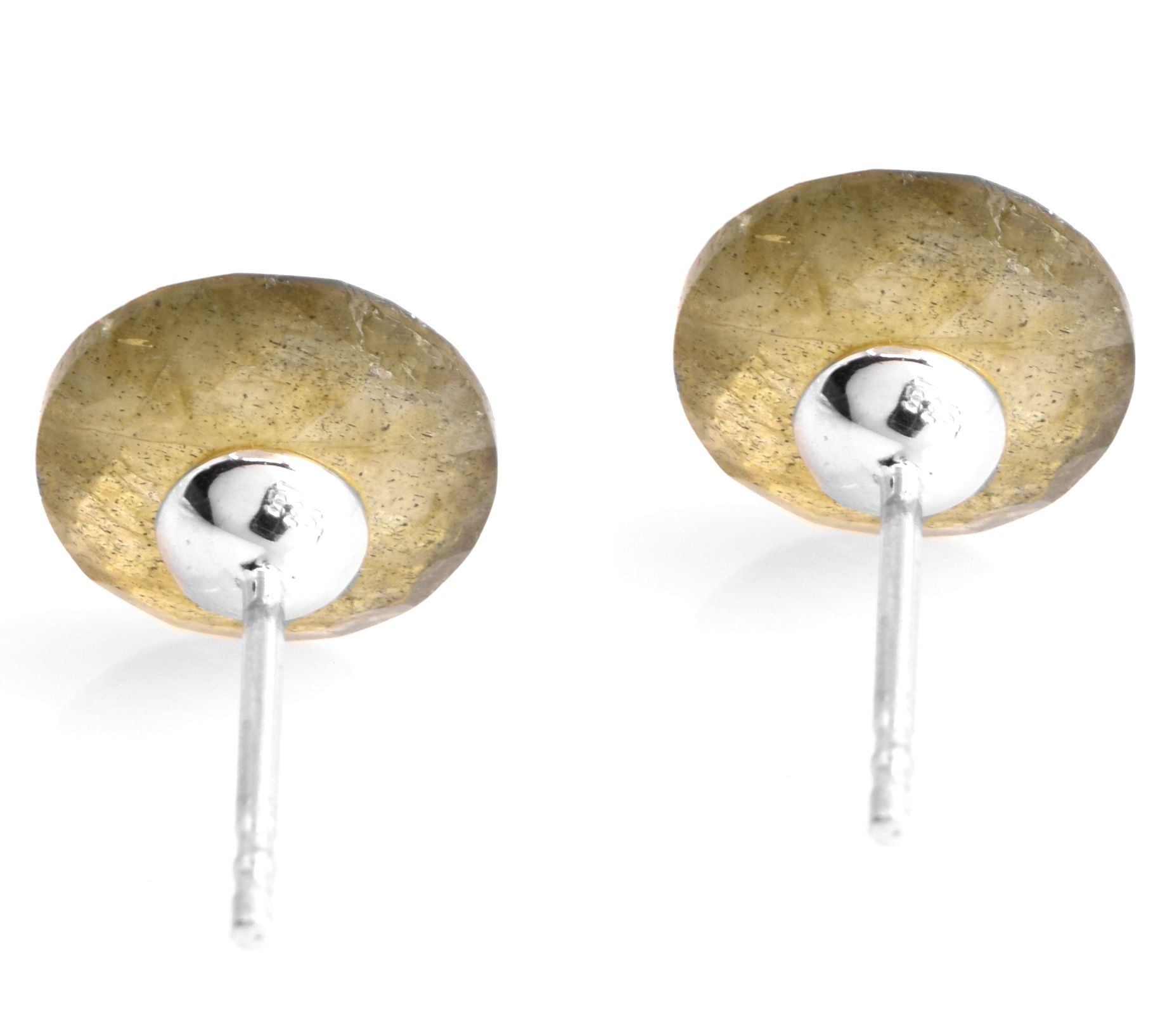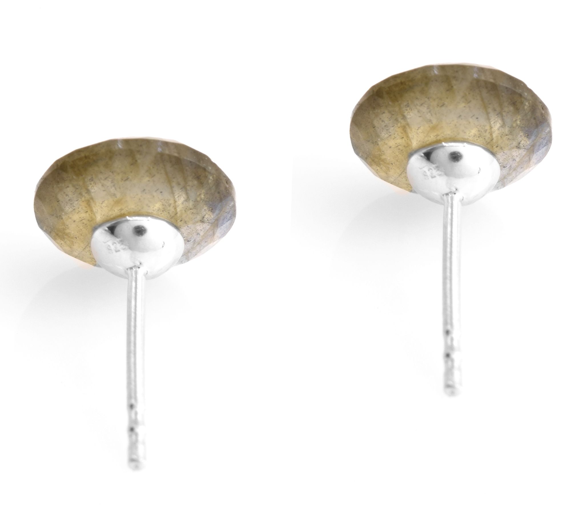 • Round-cut labradorite stud design