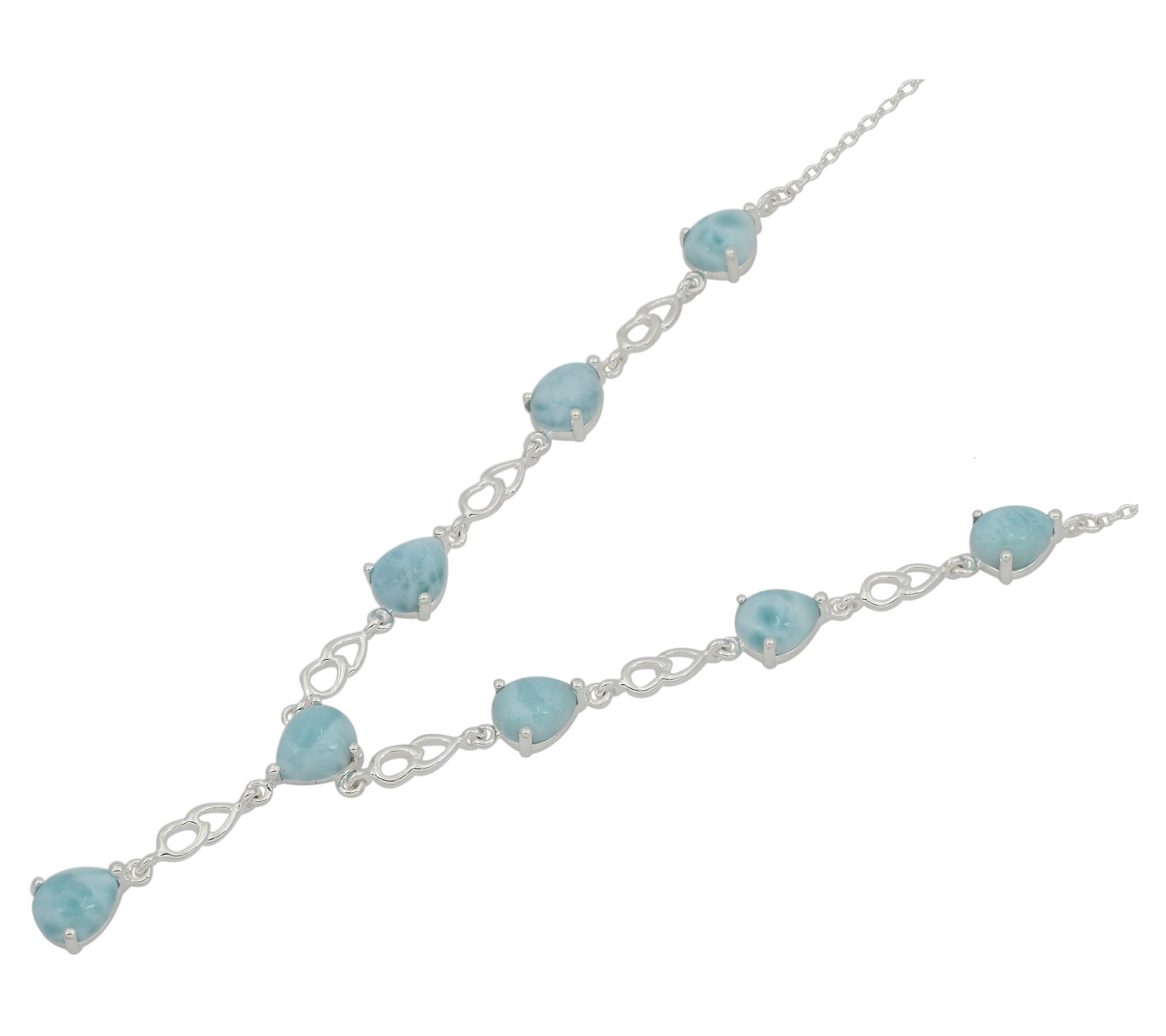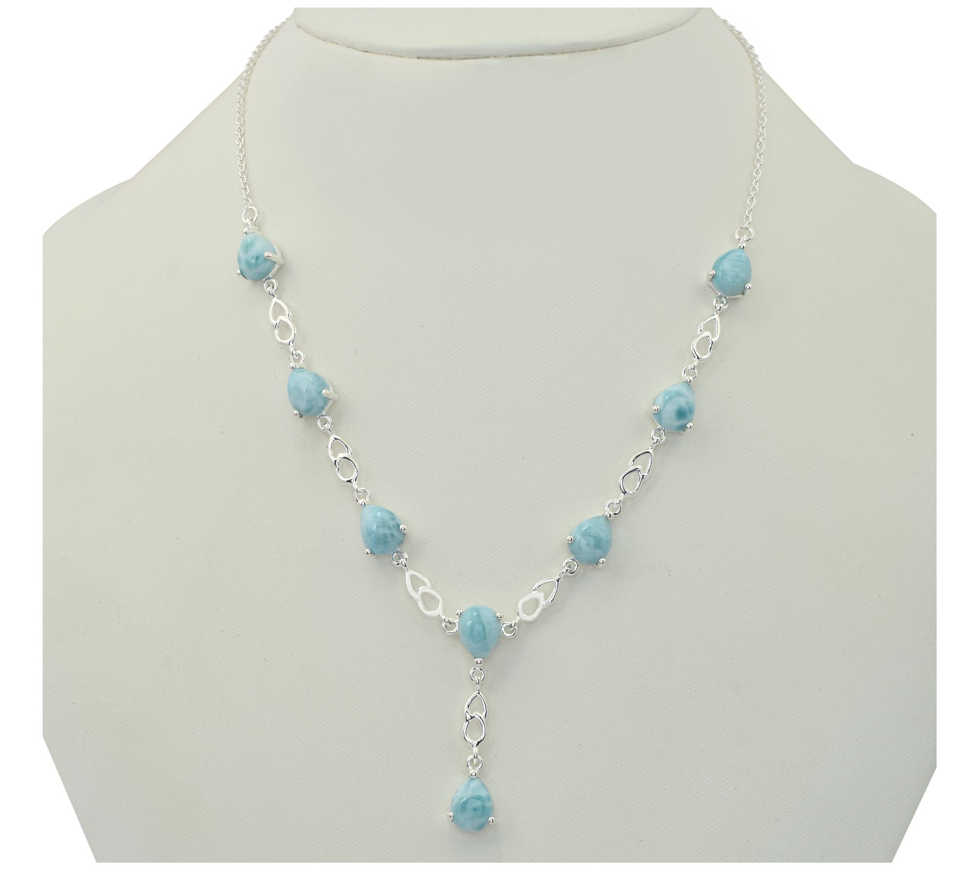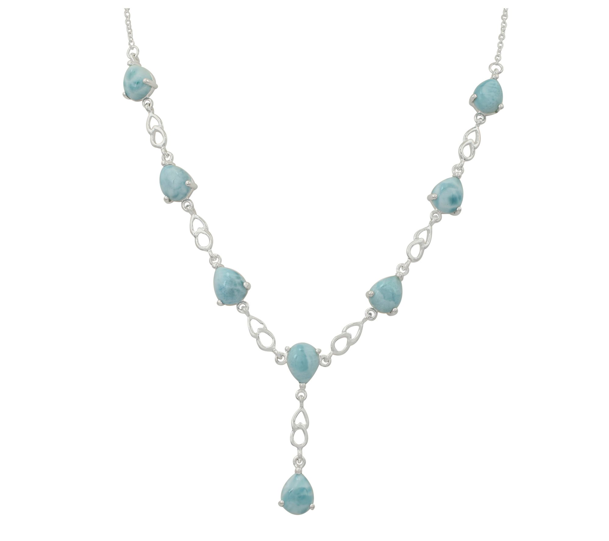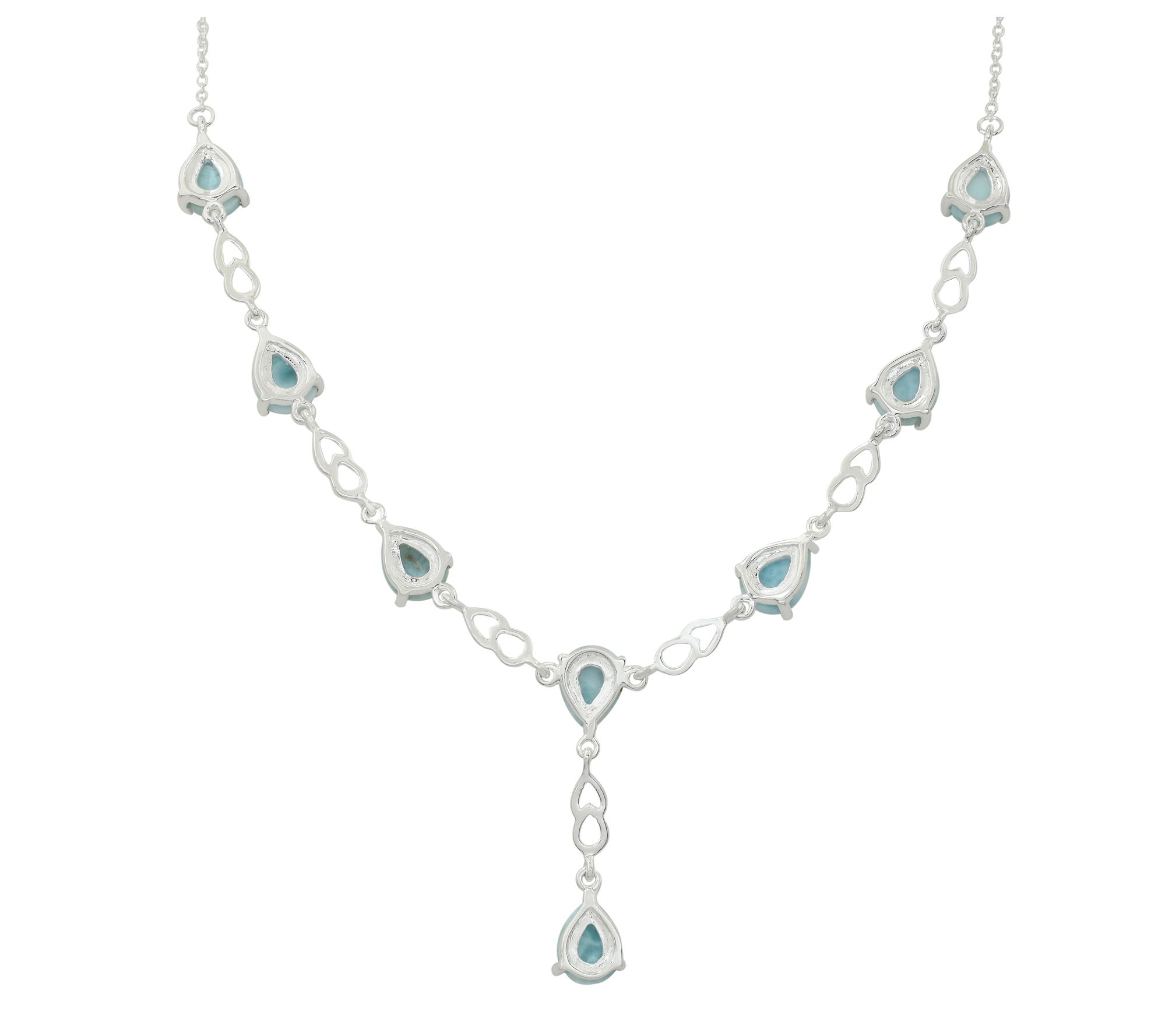 Sophisticated and serene, this larimar station necklace is a stunning addition to any jewelry collection. With its pear-shaped cabochons and high-polish finish, the piece is perfect for both special occasions and everyday wear. From Affinity Gems®.