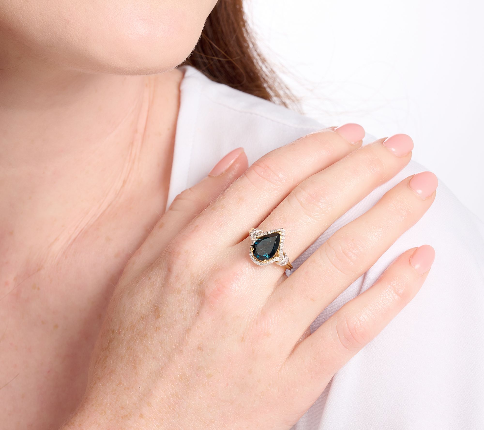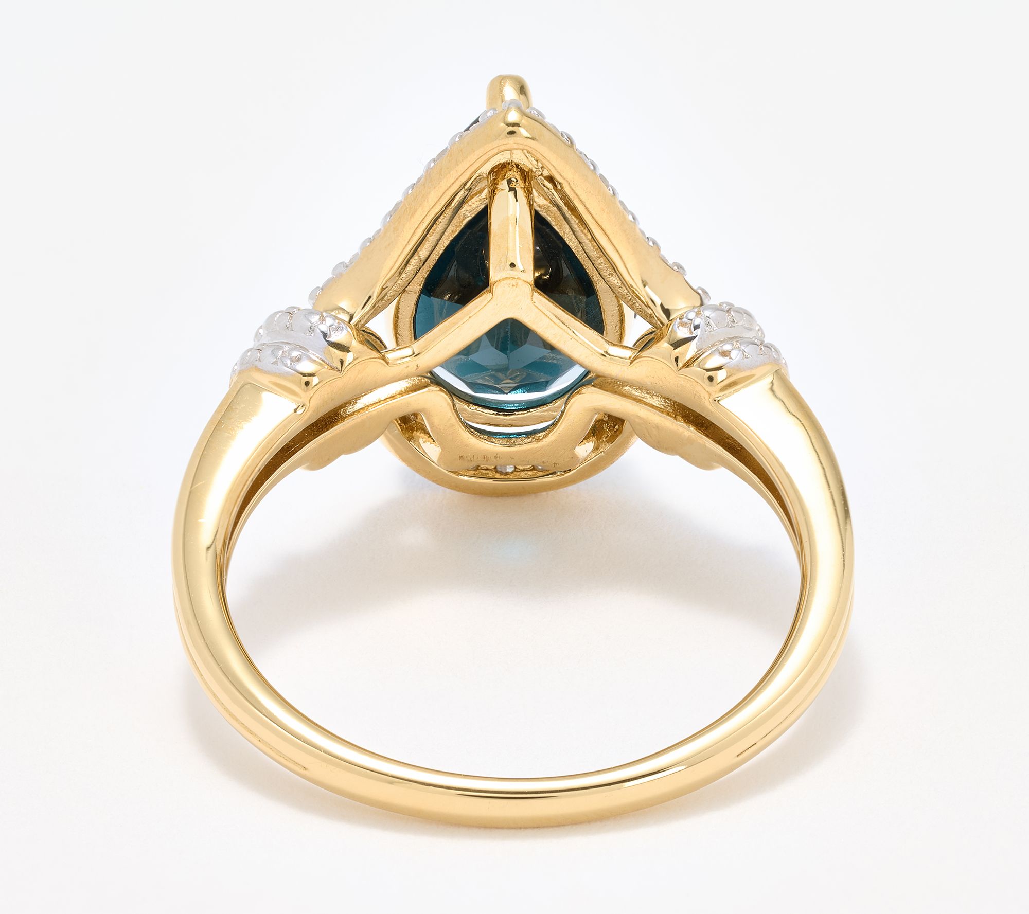 It's not every day you discover a ring as sensational as this Affinity stunner. Taking center stage is a pear-shaped, London blue topaz gemstone that's prong-set so you can fully appreciate its breathtaking beauty from every angle. Add in a sprinkling of round, white diamonds and you have a sparkling piece that's dripping with drama and ready for any opportunity to shine. From Affinity® Gems.