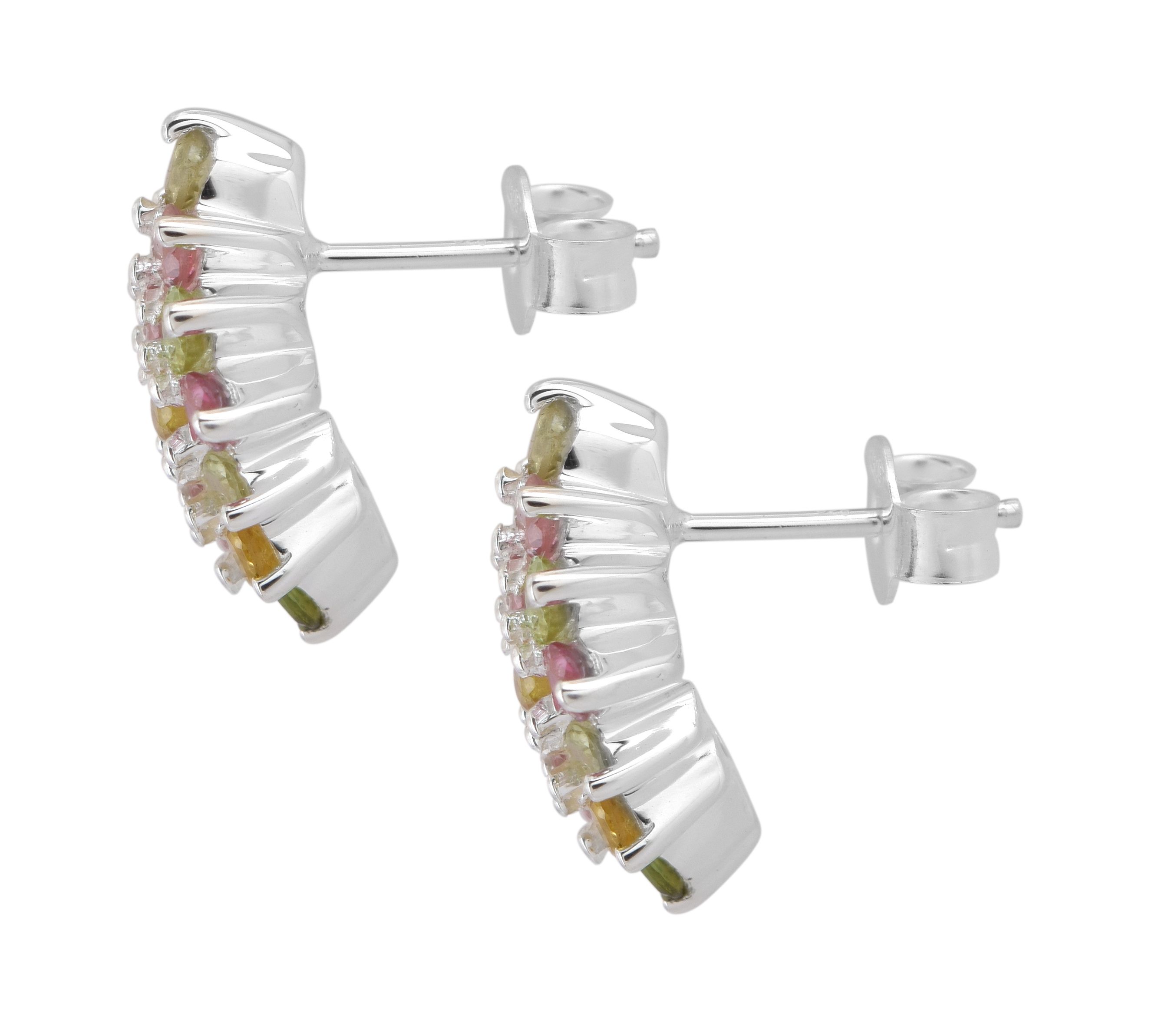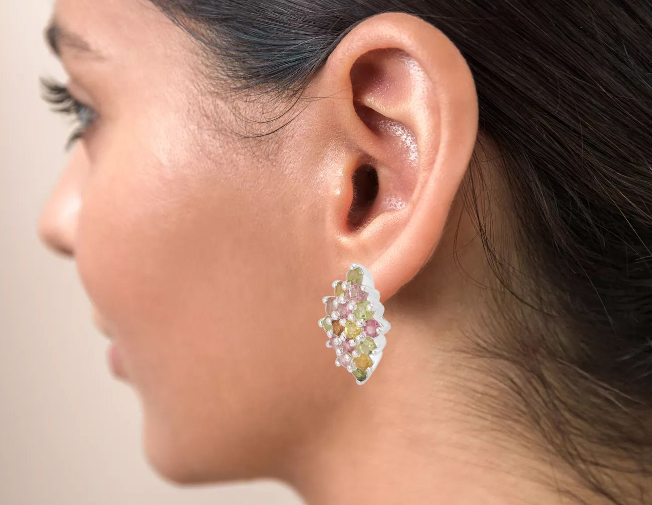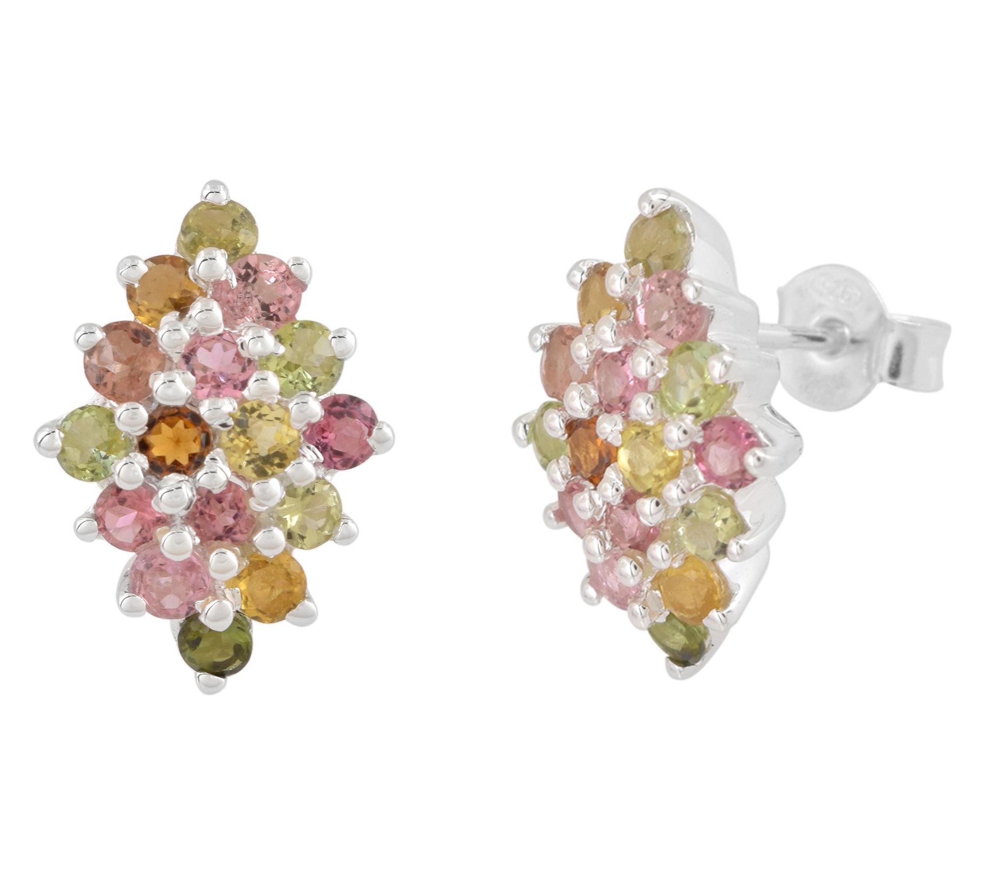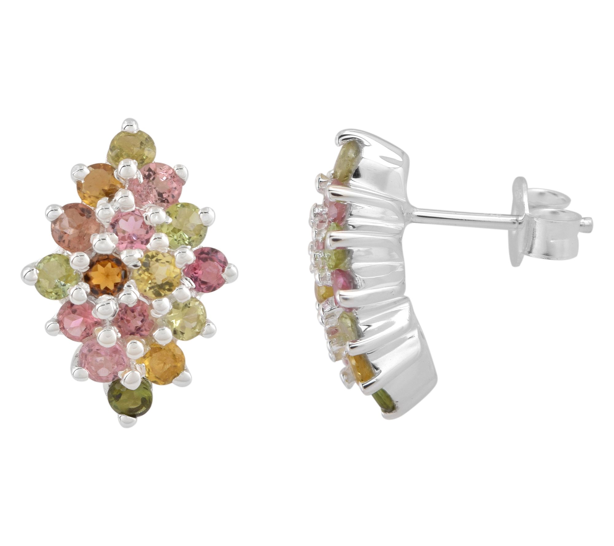 When your day calls for a burst of vibrant color, these multicolor tourmaline earrings are sure to shine. Each gemstone -- pink, green, and yellow tourmaline -- catches the light and brings lively energy to your style, whether you're at brunch with friends or dressing up for a special occasion. Set in polished sterling silver with a timeless round cut, they strike a gorgeous balance between bold and classic. From Affinity® Gems.