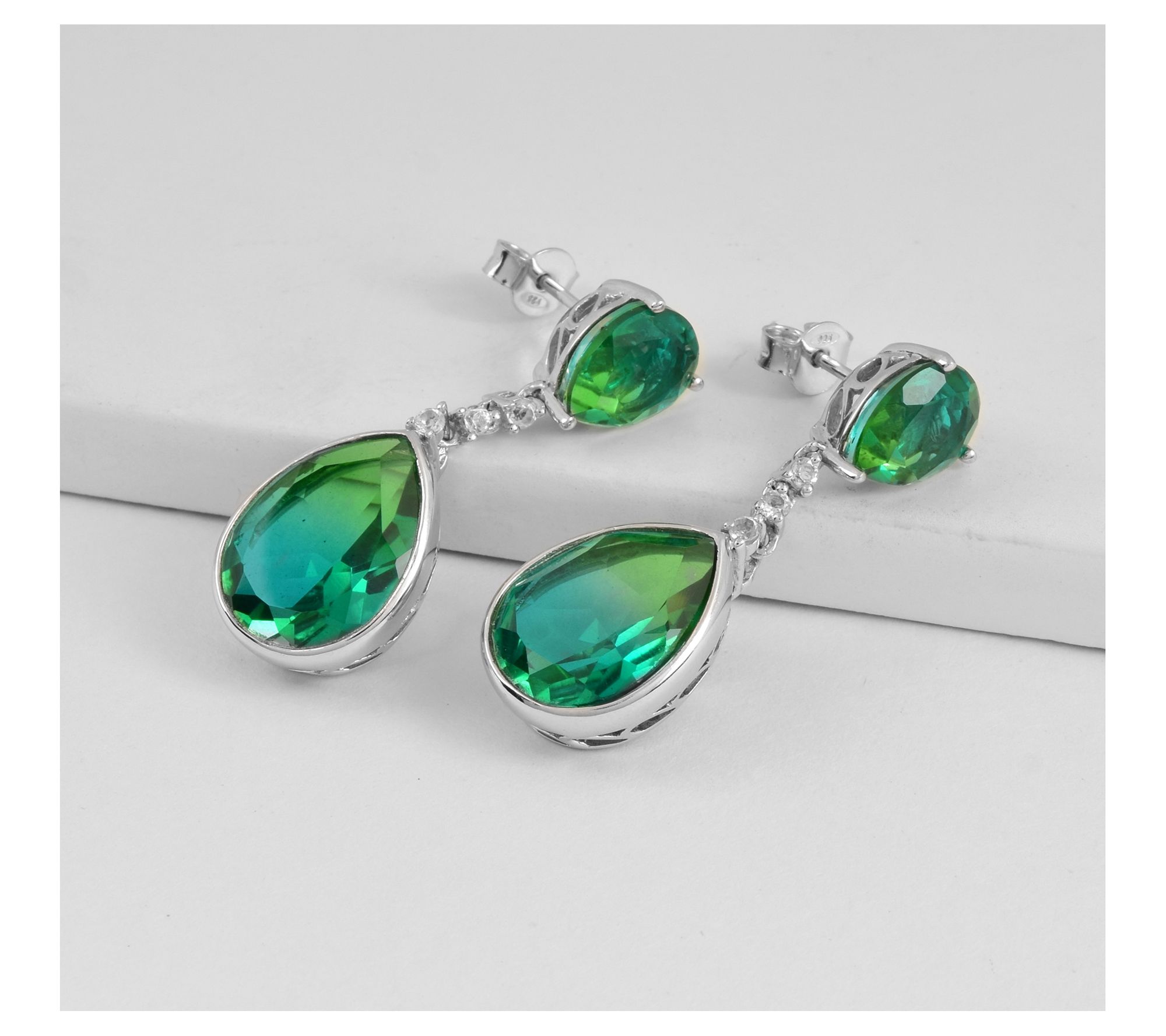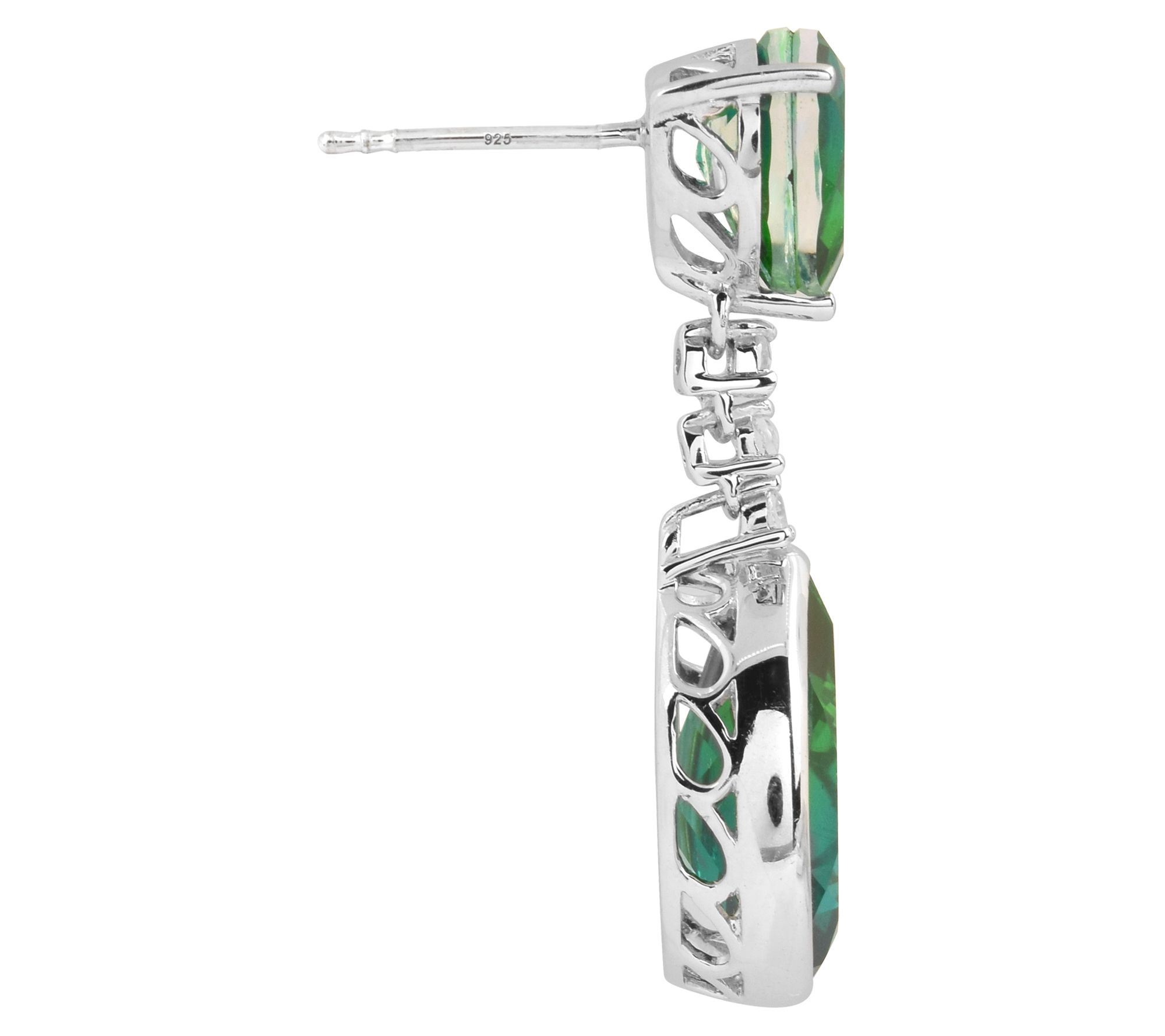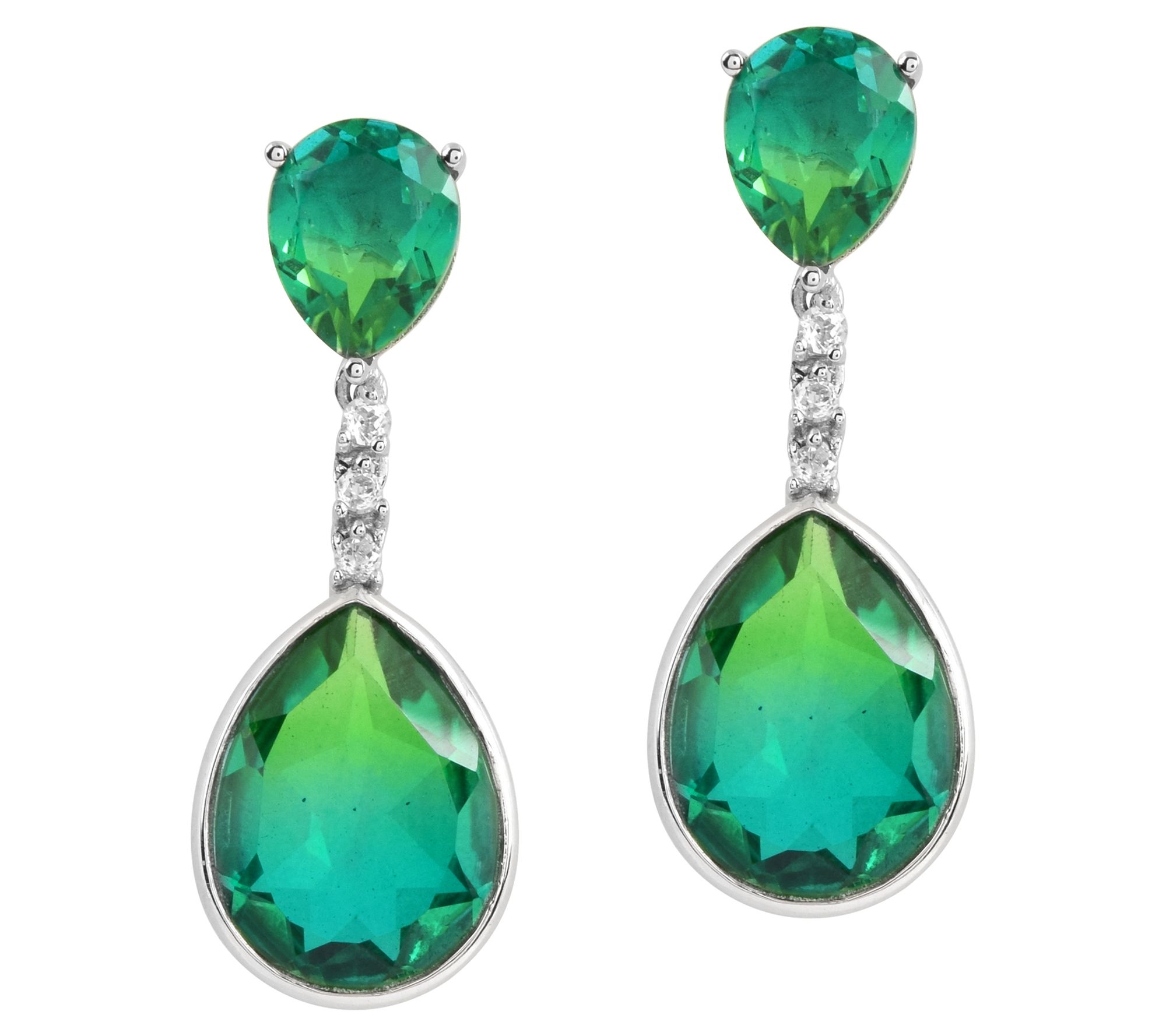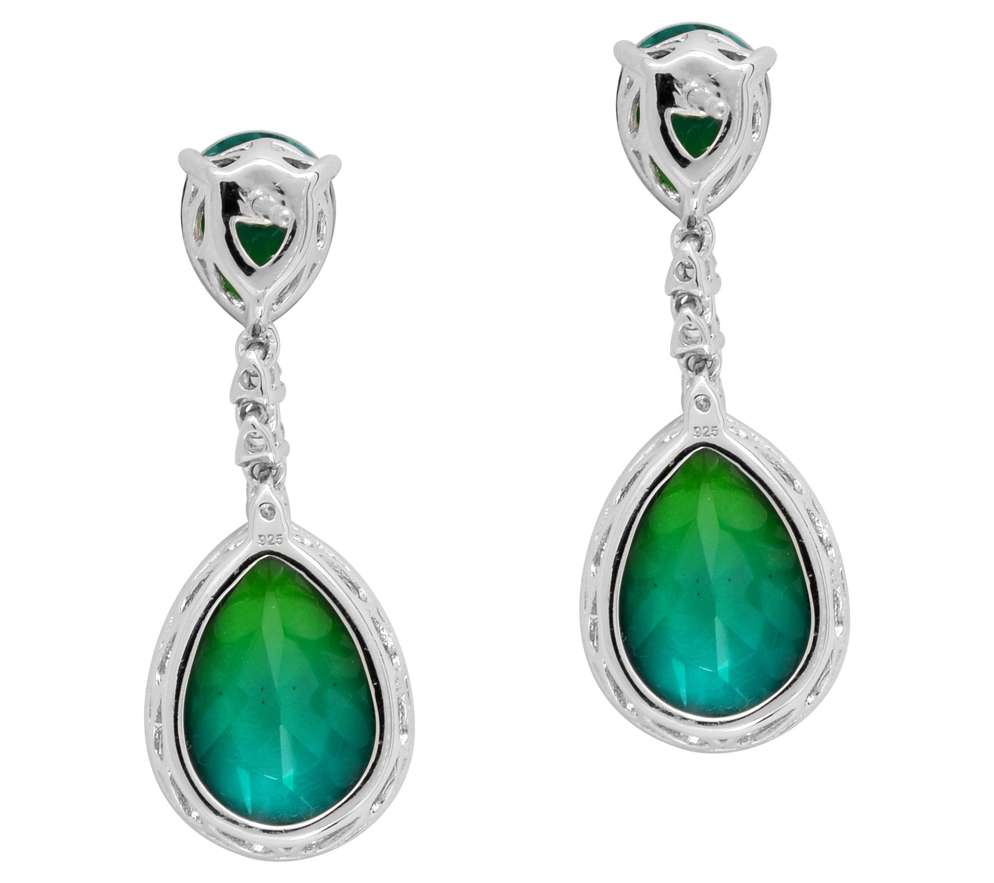 Dangle design; pear-shaped, prong- and bezel-set doublet aurora borealis gemstones connected by a row of round, prong-set white topaz gemstones
