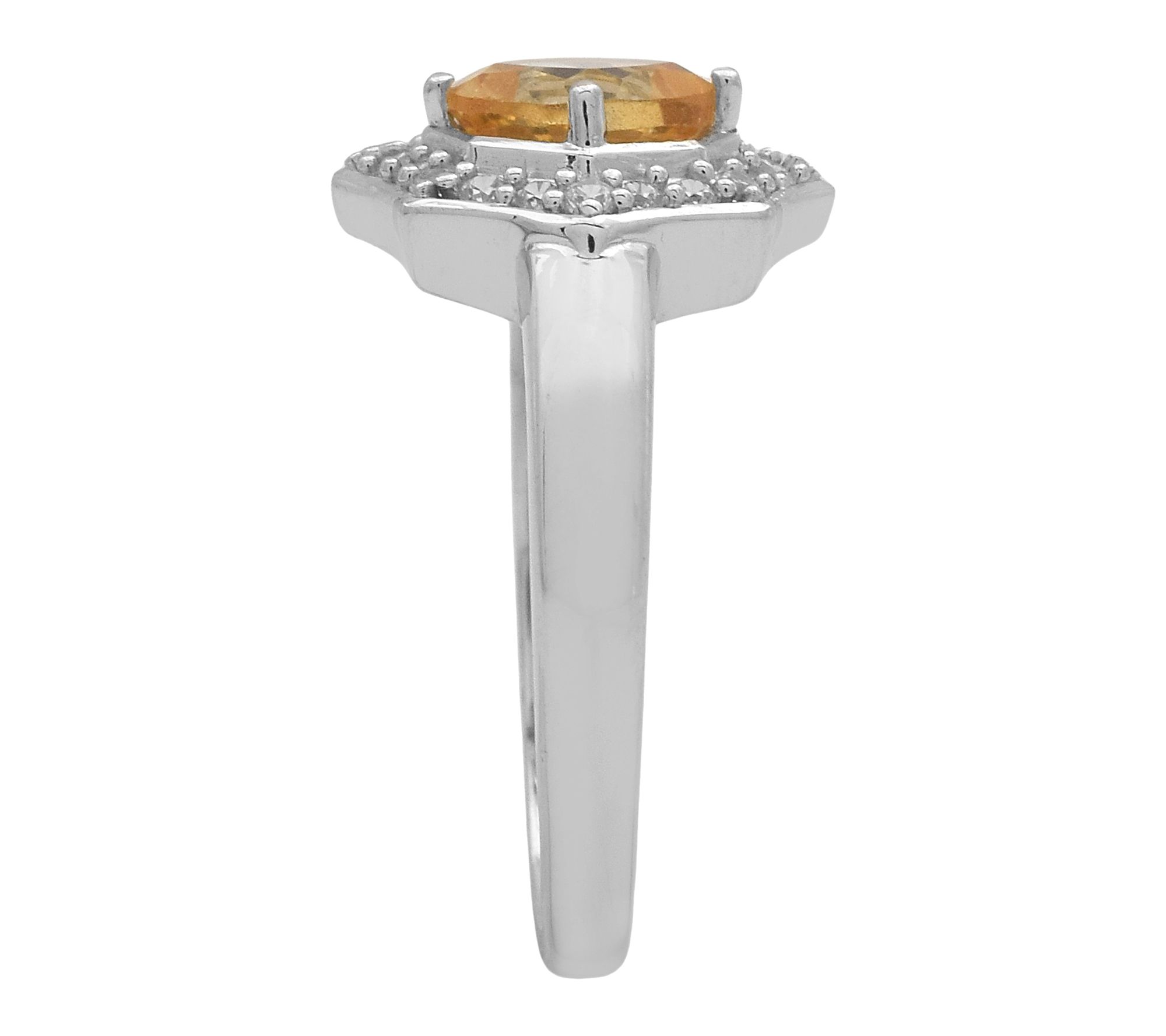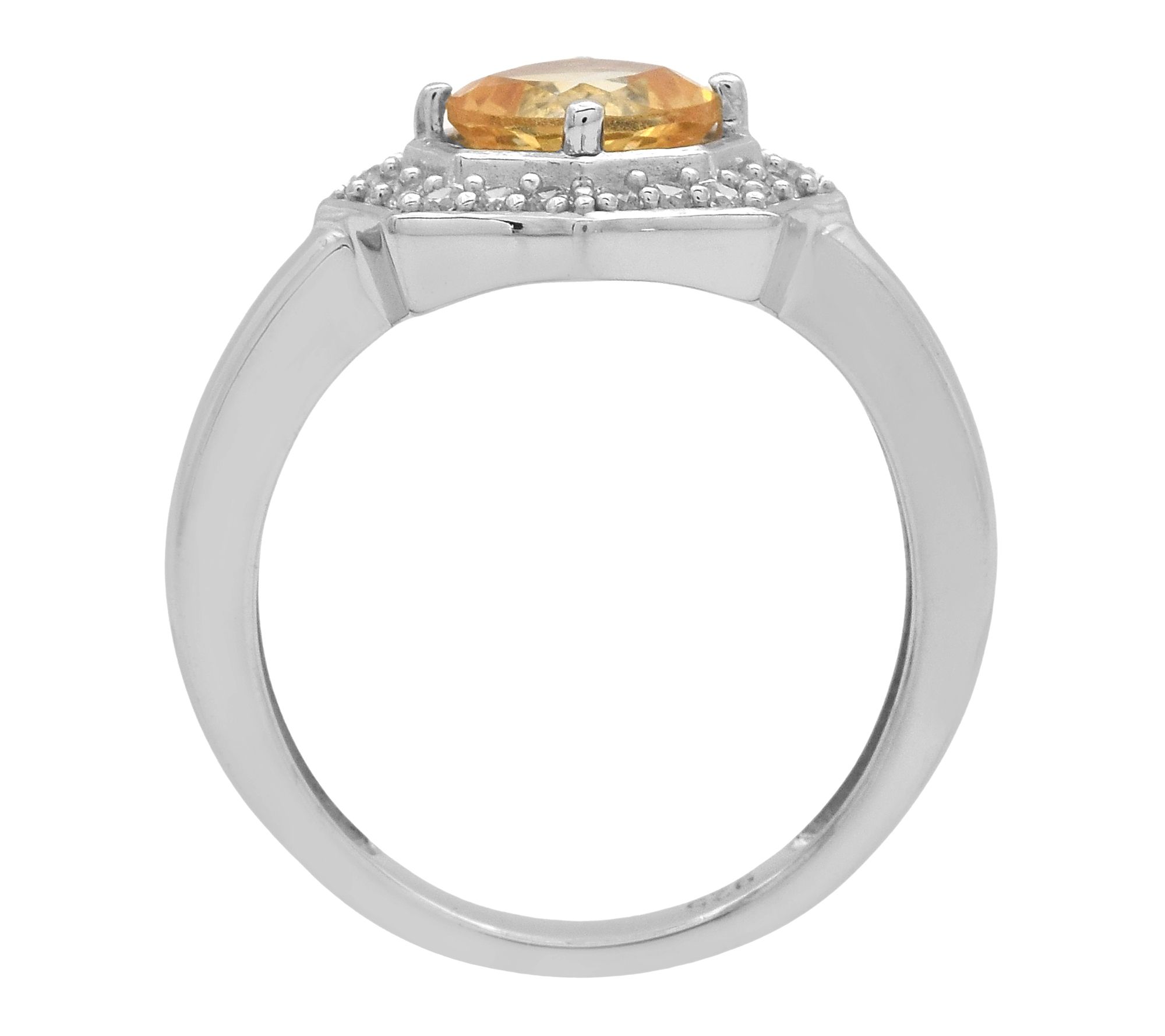 Bright spot! A halo of sparkly white zircon draws even more admiring glances to this cushion-cut gemstone ring. From Affinity® Gems.