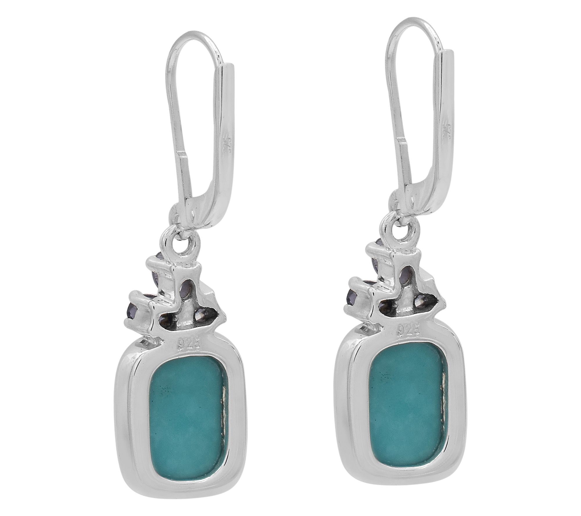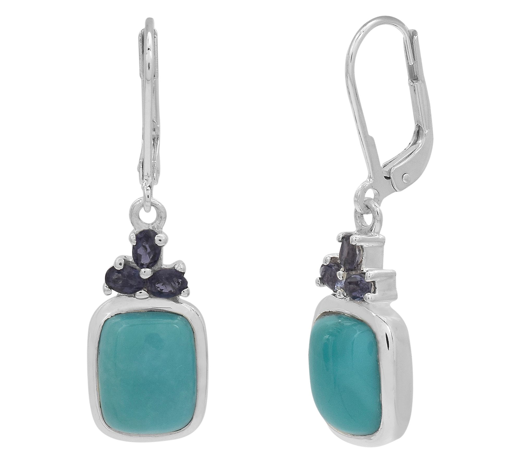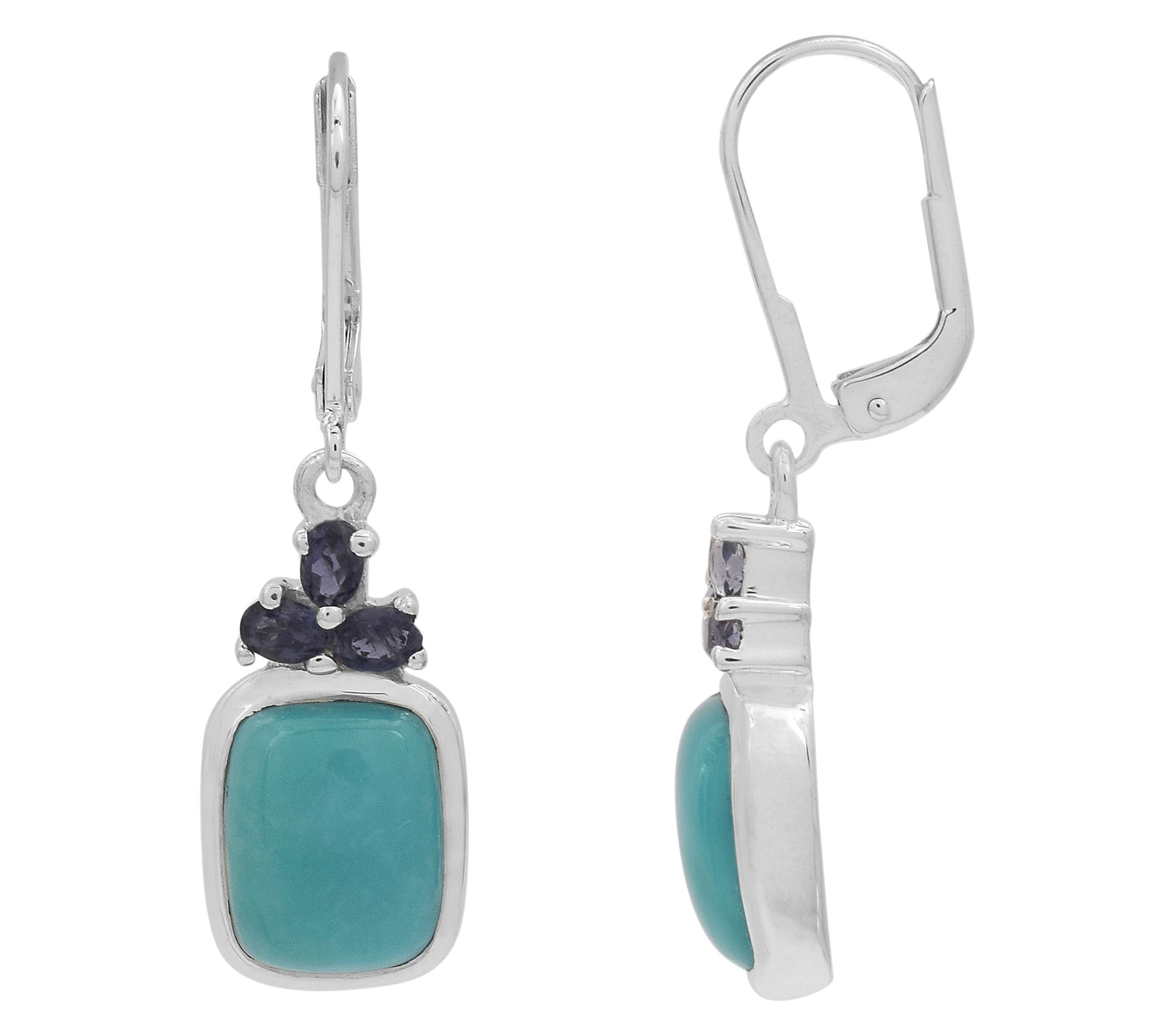 A stroll through a gallery or an evening out calls for an accessory as striking as these dangle earrings, showcasing a combination of rich iolite and smooth Sleeping Beauty turquoise. Lever backs lend comfort for all-day or all-night wear, while the sterling silver setting gleams beneath every light. From Affinity® Gems.