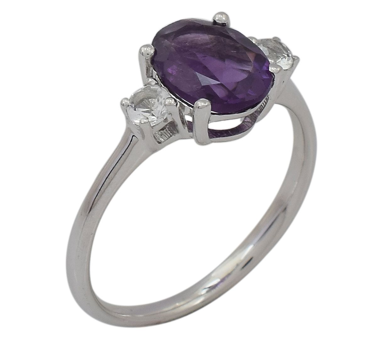 • Prong-set,oval-cut gemstone; prong-set, round white topaz
