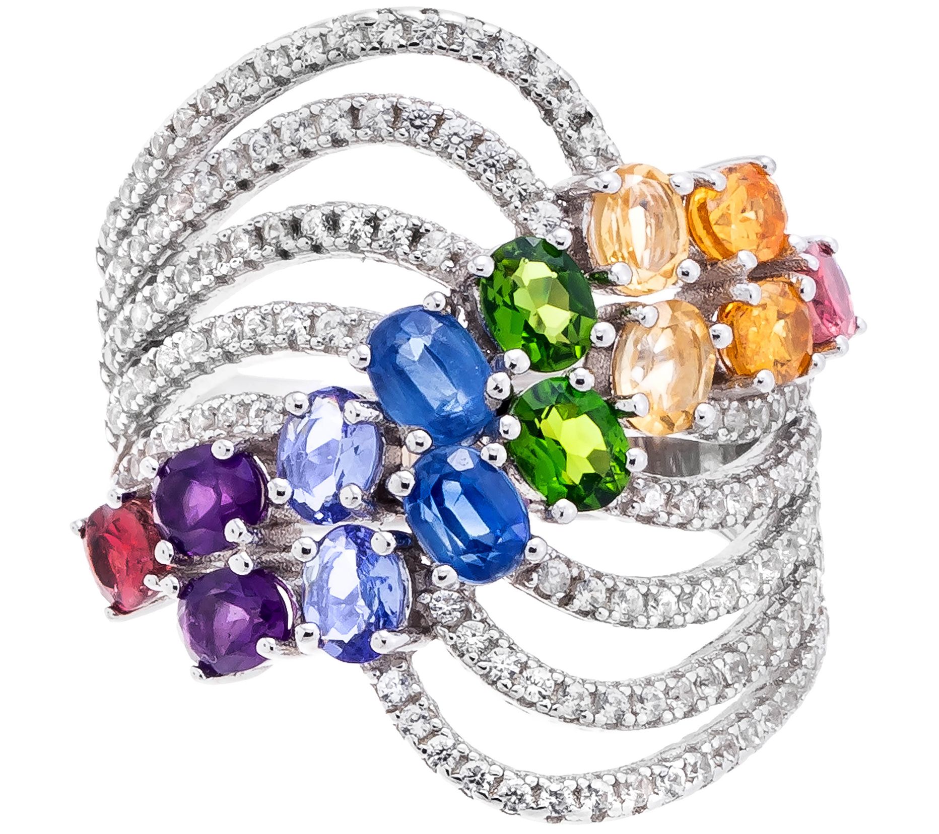 Affinity Gems Multi-Gemstone Wave Ring,Sterling Silver