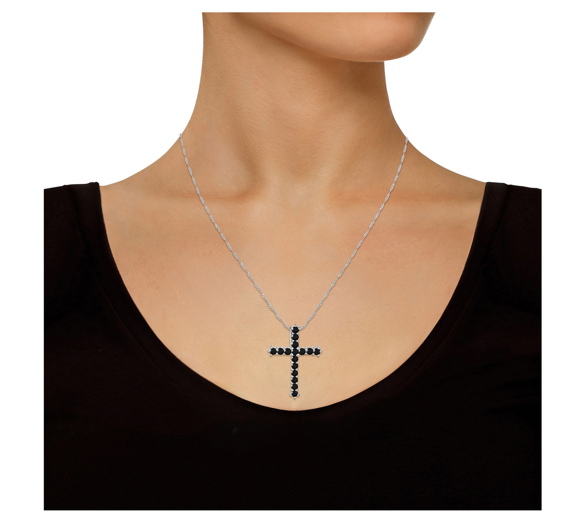 • Cross pendant outlined with round prong-set onyx stones
