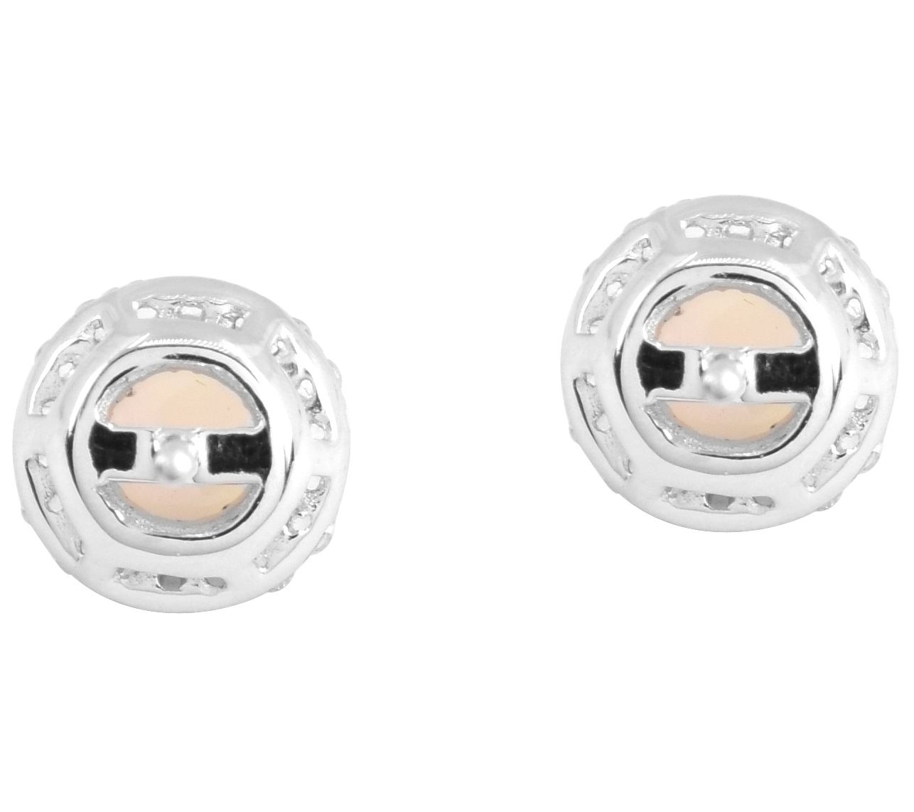 Add shimmer and intrigue to your look with these beautiful earrings, showcasing an Ethiopian opal surrounded by a halo of glimmering white topaz gemstones. From Affinity® Gems.