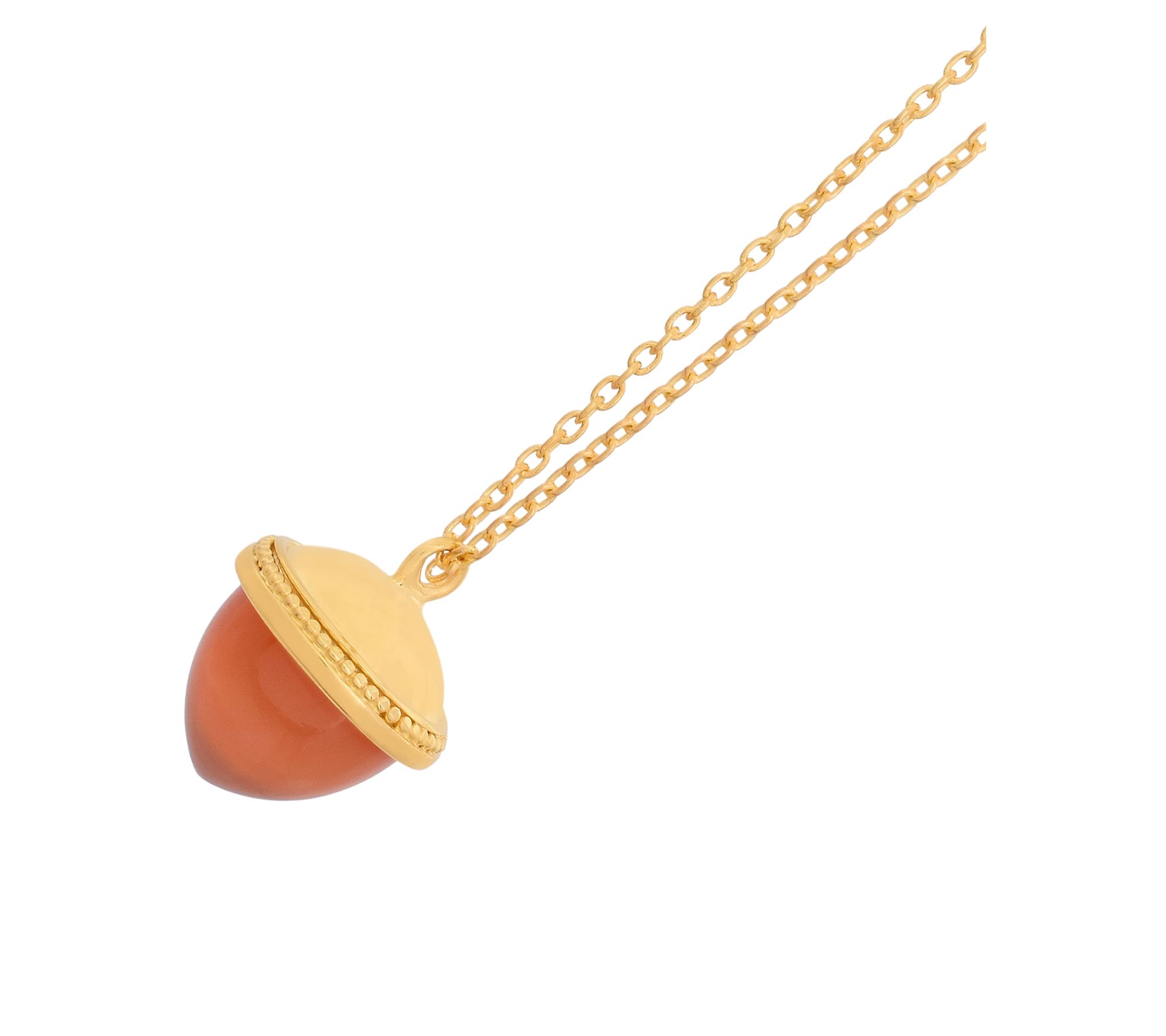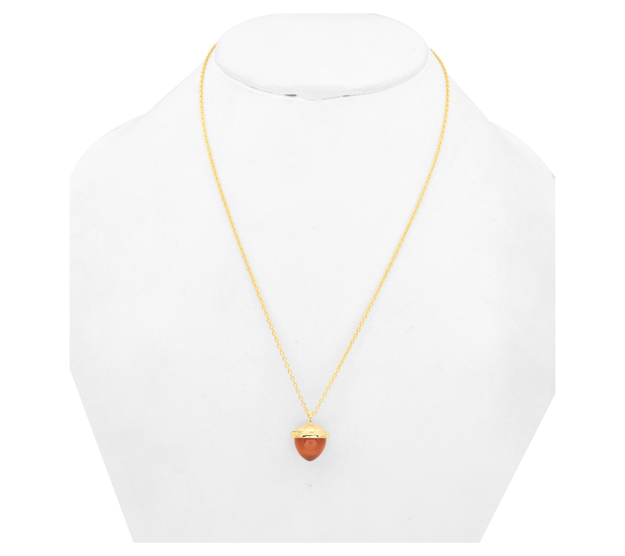 Vibrant color adds a playful twist to everyday outfits with this solitaire pendant featuring a round orange chalcedony set in 14K yellow gold-plated sterling silver. Whether worn solo or layered with other necklaces, its oval link chain and adjustable length let you personalize your look for workdays or casual weekends. From Affinity® Gems.