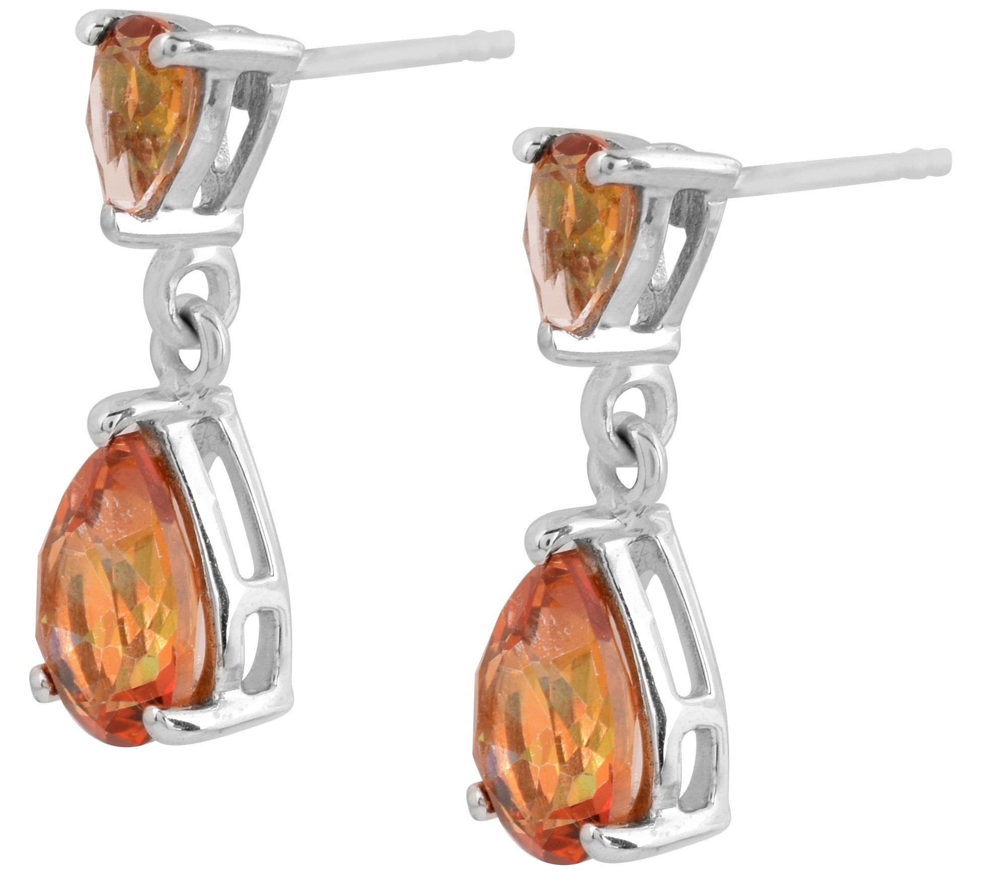 Affinity Gems Orange Coated Quartz Dangle Earri ngs, Sterling