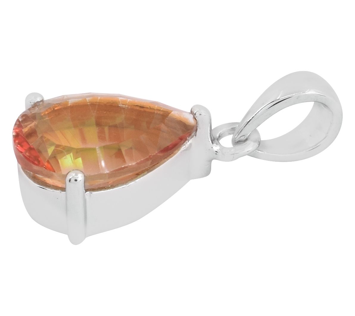 • Pear-shaped, prong-set orange coated quartz solitaire