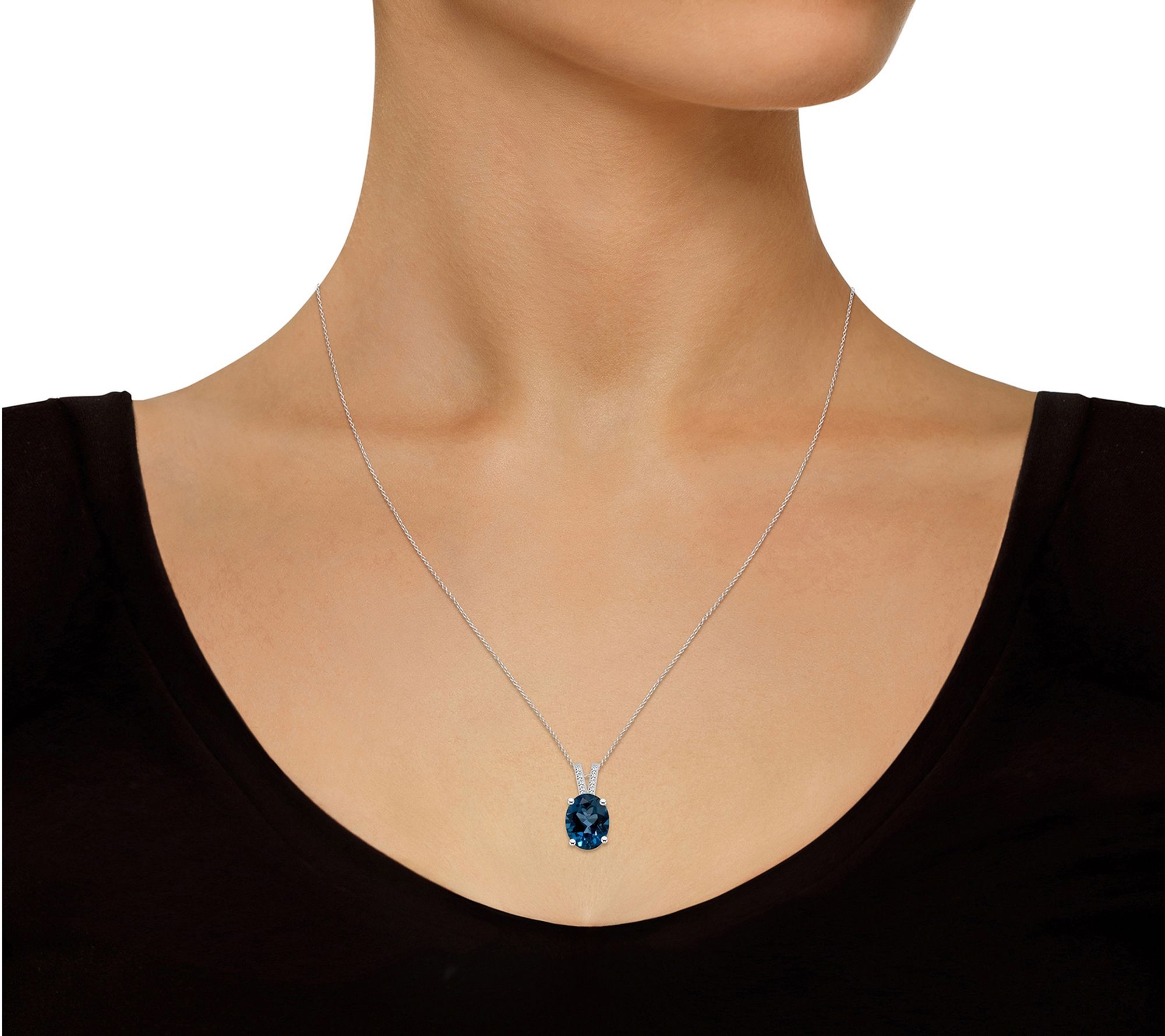 Glamorize your outfit with the addition of this solitaire pendant boasting a sultry London blue topaz surrounded by sparkling diamonds. From Affinity Gems.