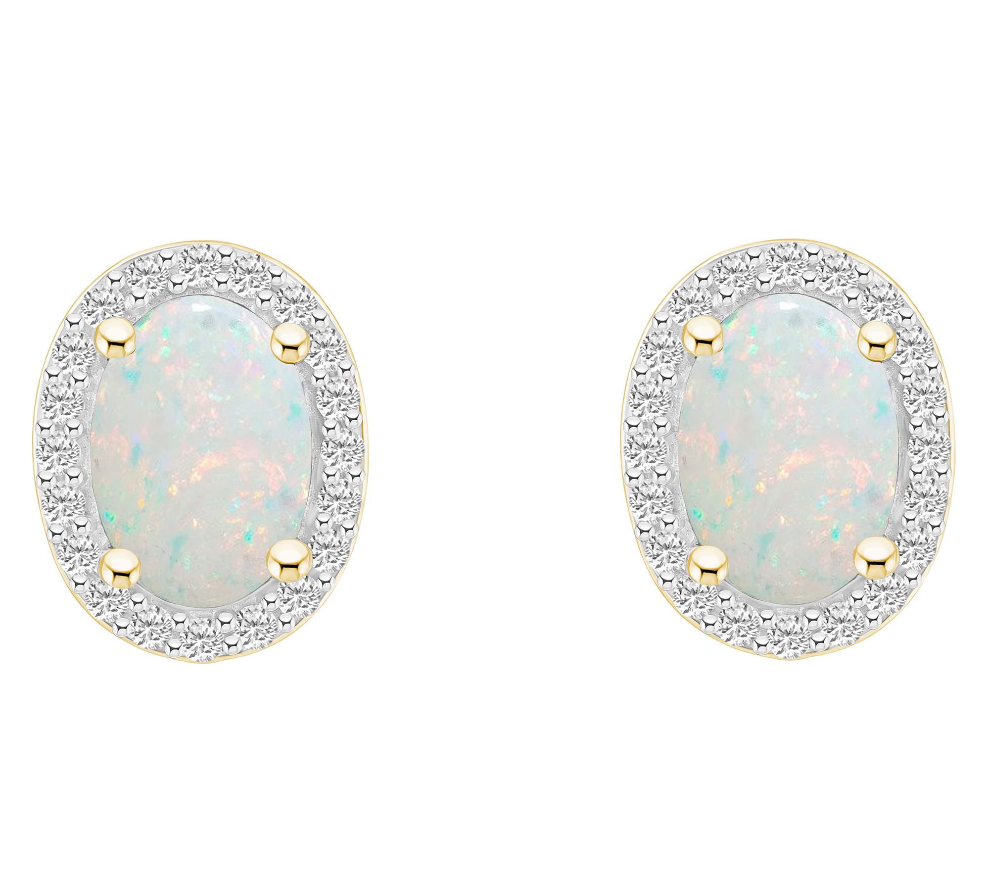 Elevate your style with these stunning stud earrings featuring a pair of created oval-cut gemstones delicately surrounded by a halo of created white sapphires. From Affinity® Gems.