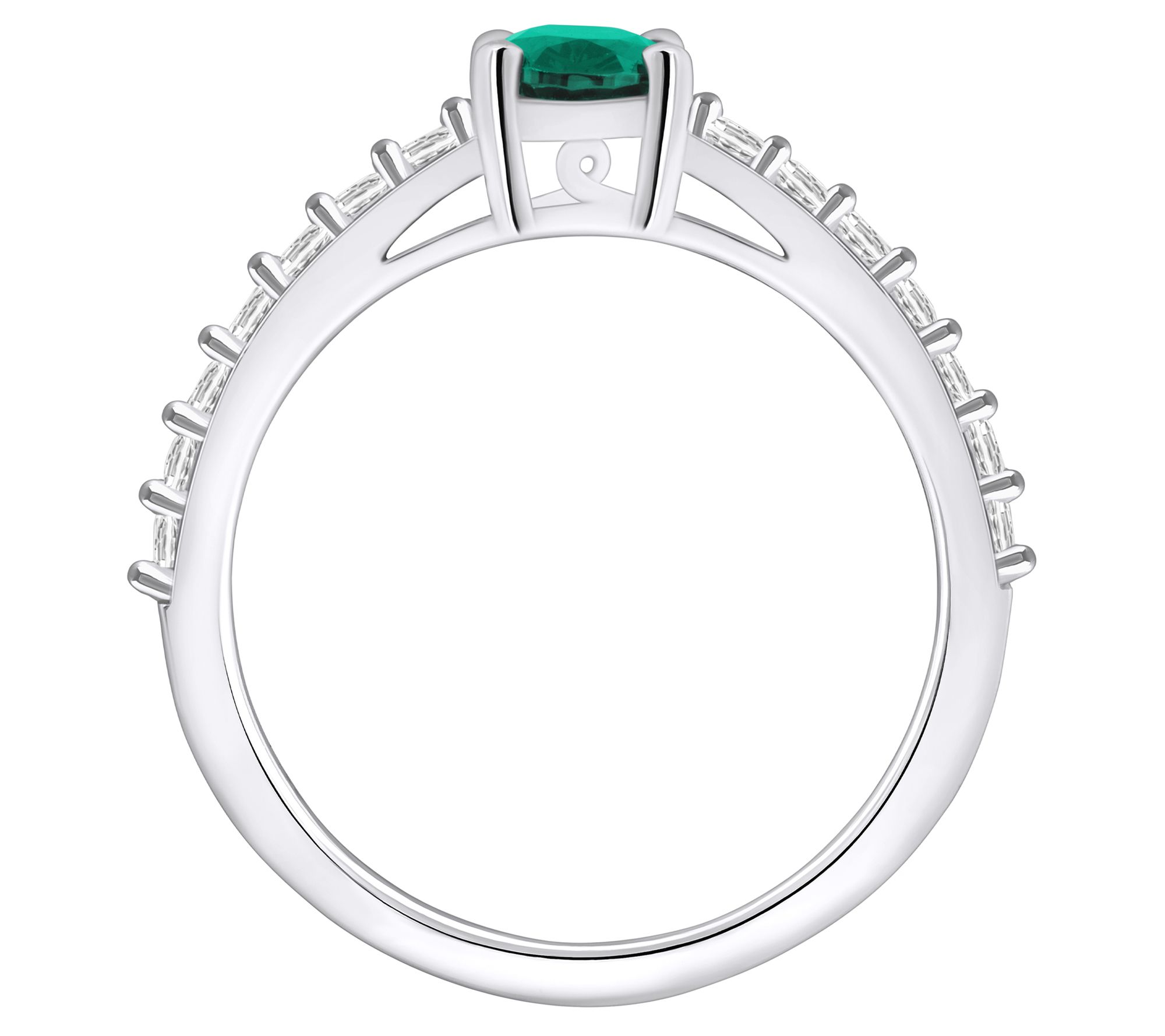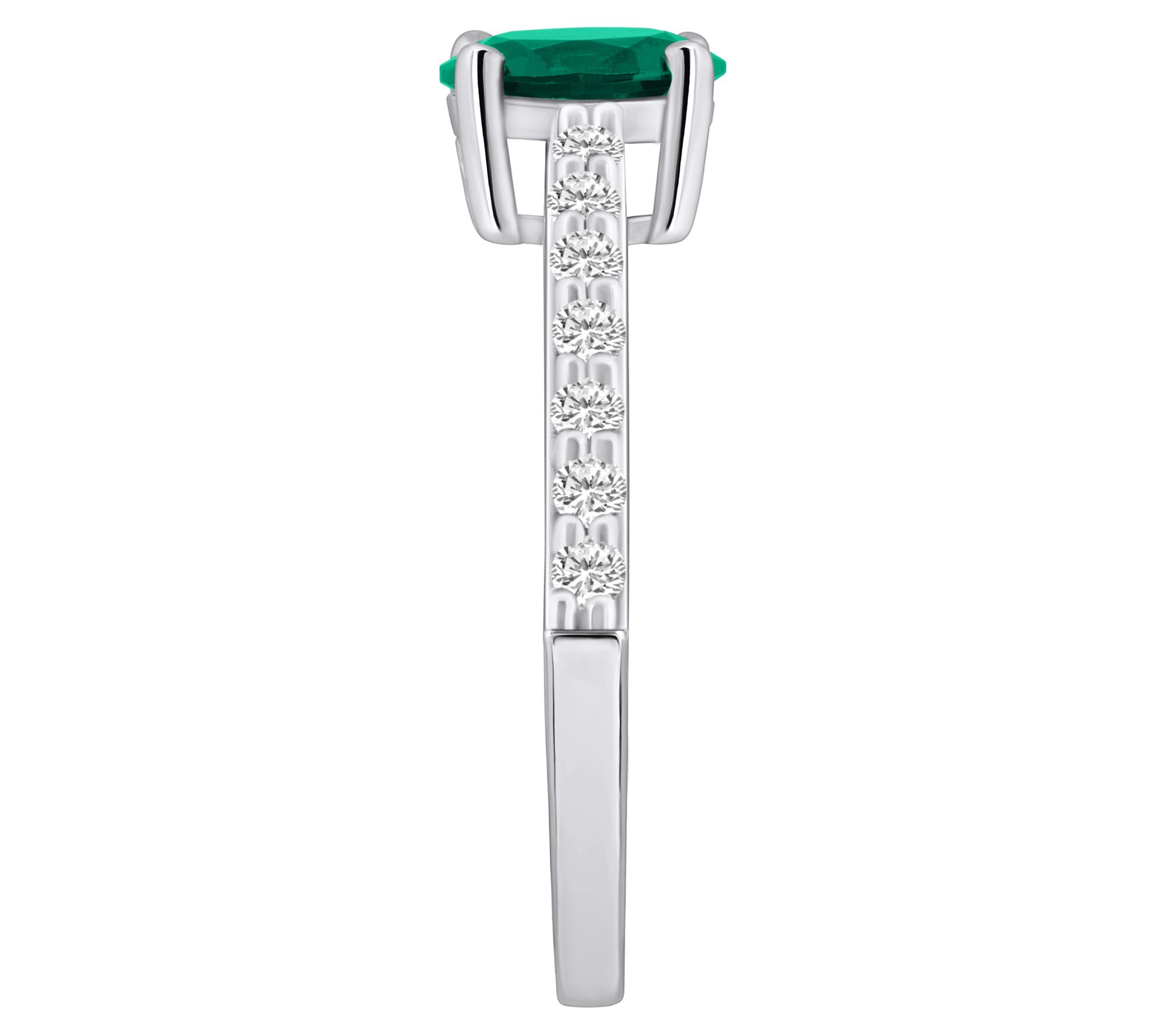 Center oval-cut gemstone; round-cut, prong-set diamonds on shank