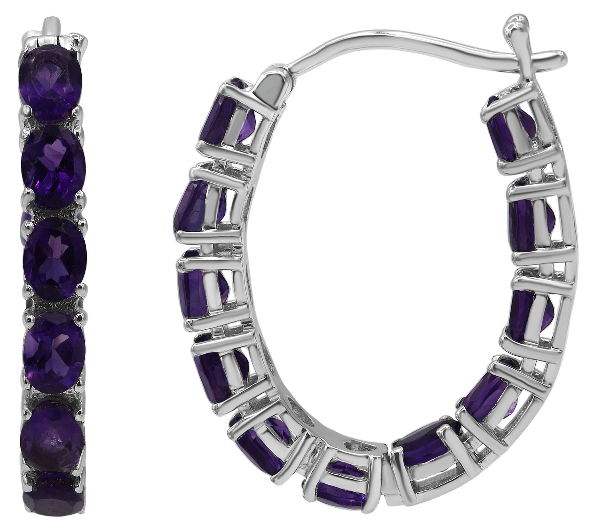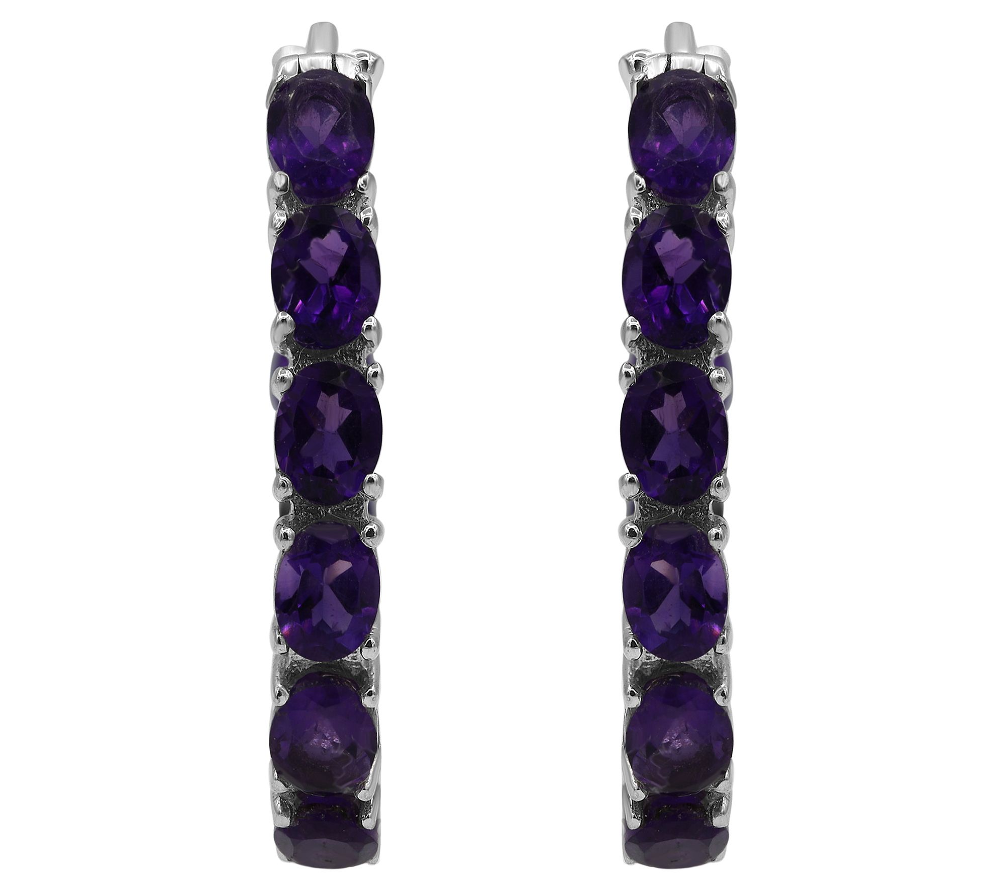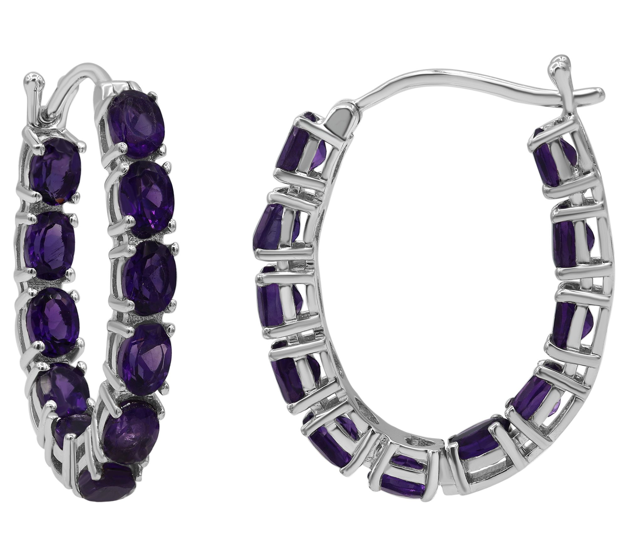 Affinity Gems Oval Gemstone Inside-Out Hoop Earrings, Sterling