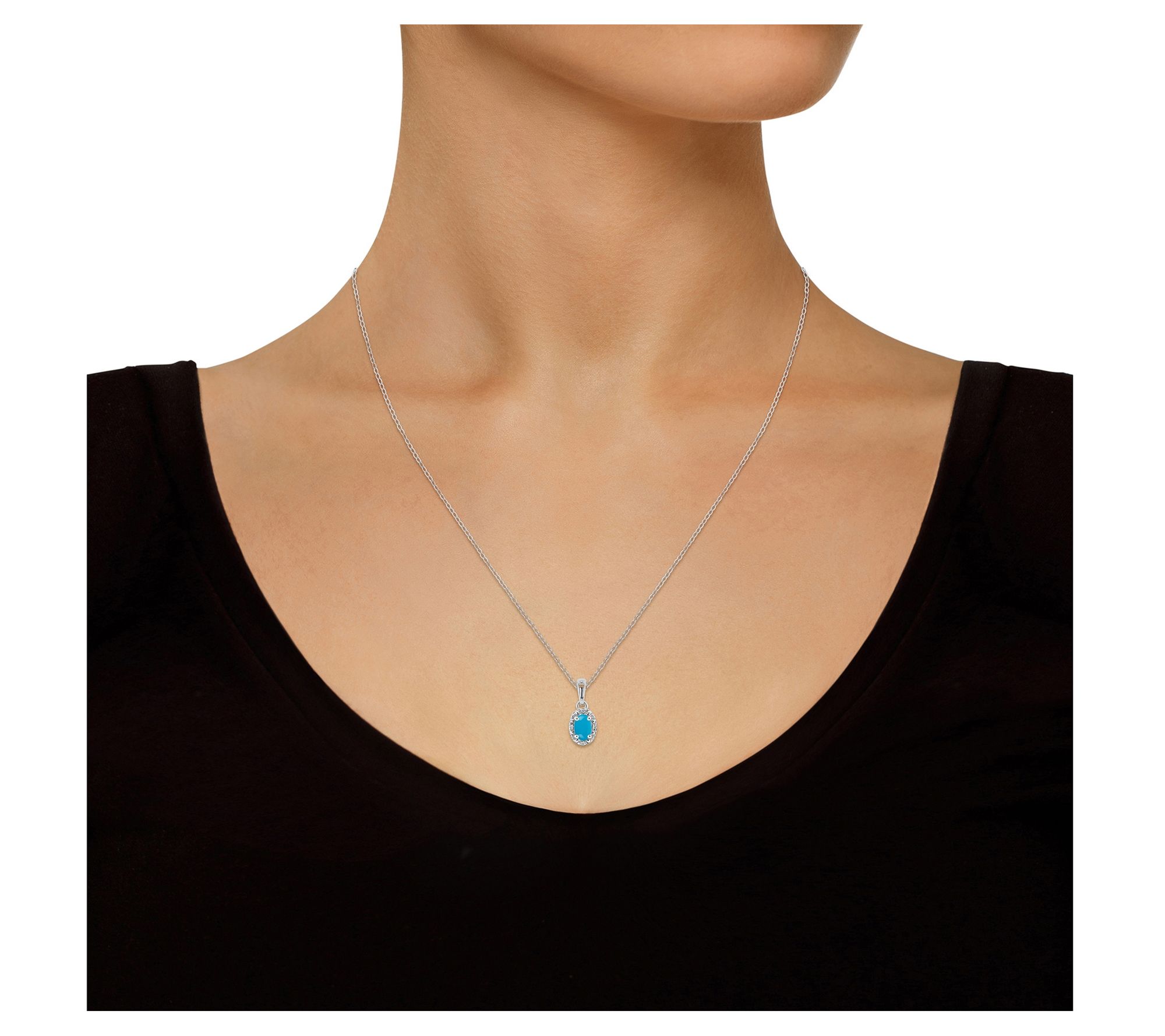 Affinity Gems Oval Turquoise & Diamond Pendantw/ Chain