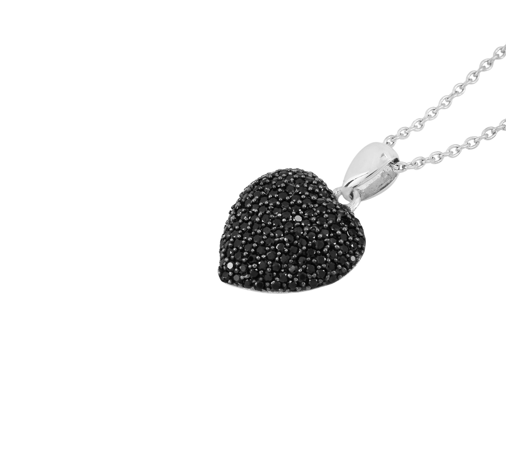 A sparkling heart-shaped pendant adorned with black spinel gemstones creates a look that's both romantic and bold -- ideal for date nights, special celebrations, or adding a little glamour to your everyday style. From Affinity® Gems.