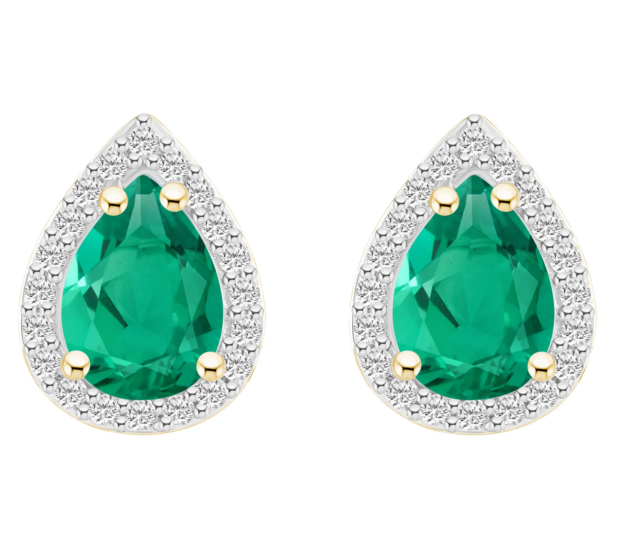 Pear-shape, prong-set created gemstones with created white sapphire halo