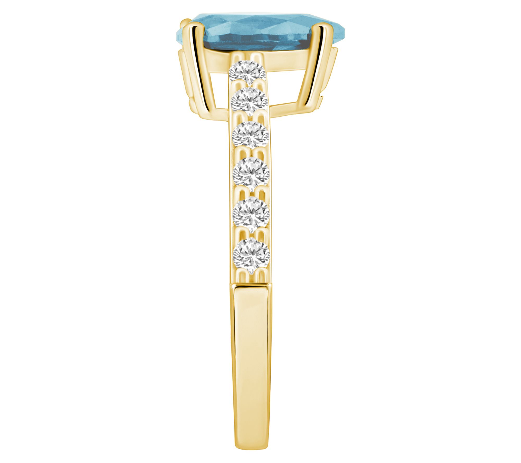 Center pear-cut aquamarine; round-cut, prong-set diamonds on shank