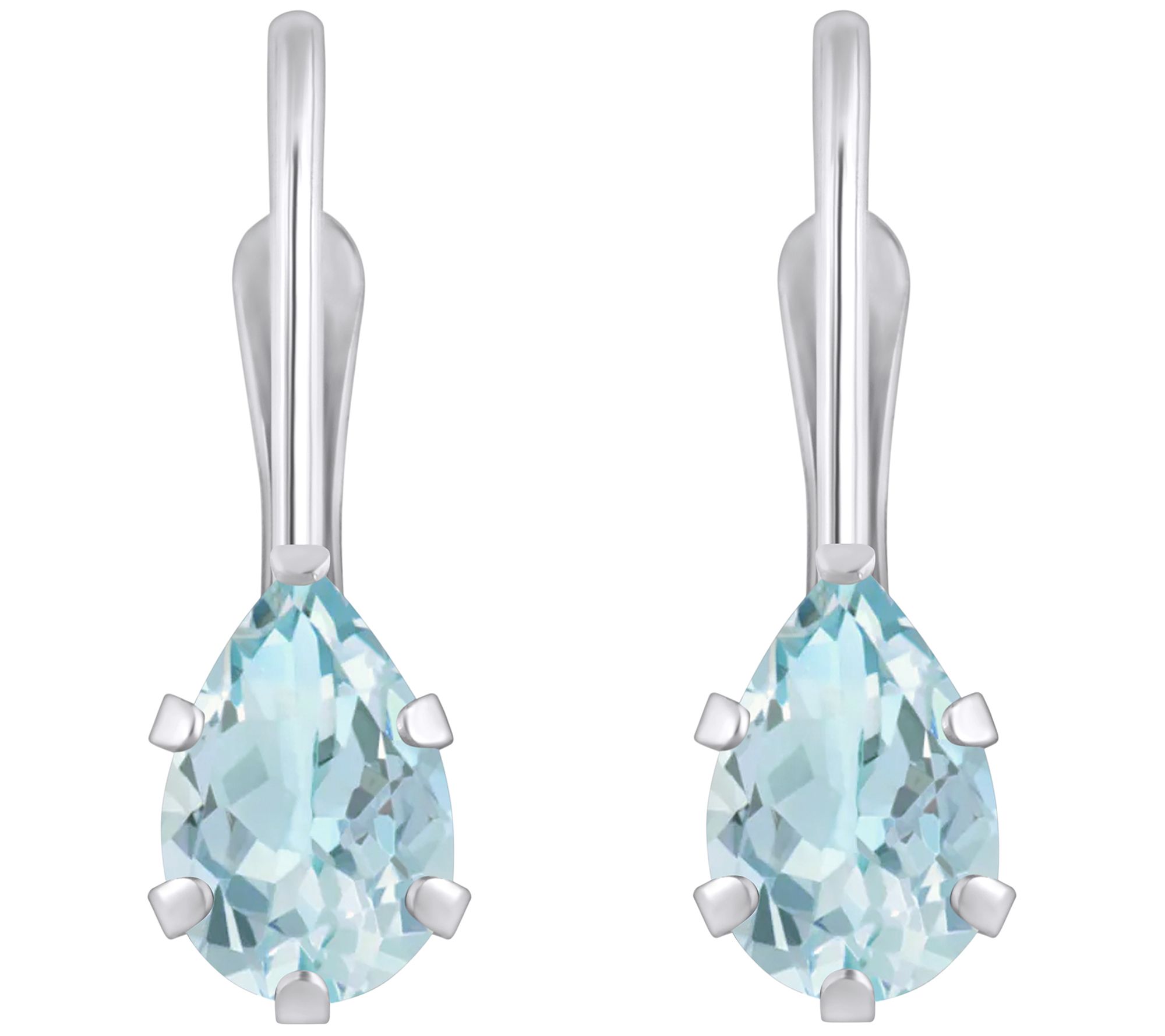 Complete the aesthetic of your outfit with these versatile drop earrings featuring glittery pear-cut aquamarine gems. From Affinity Gems.