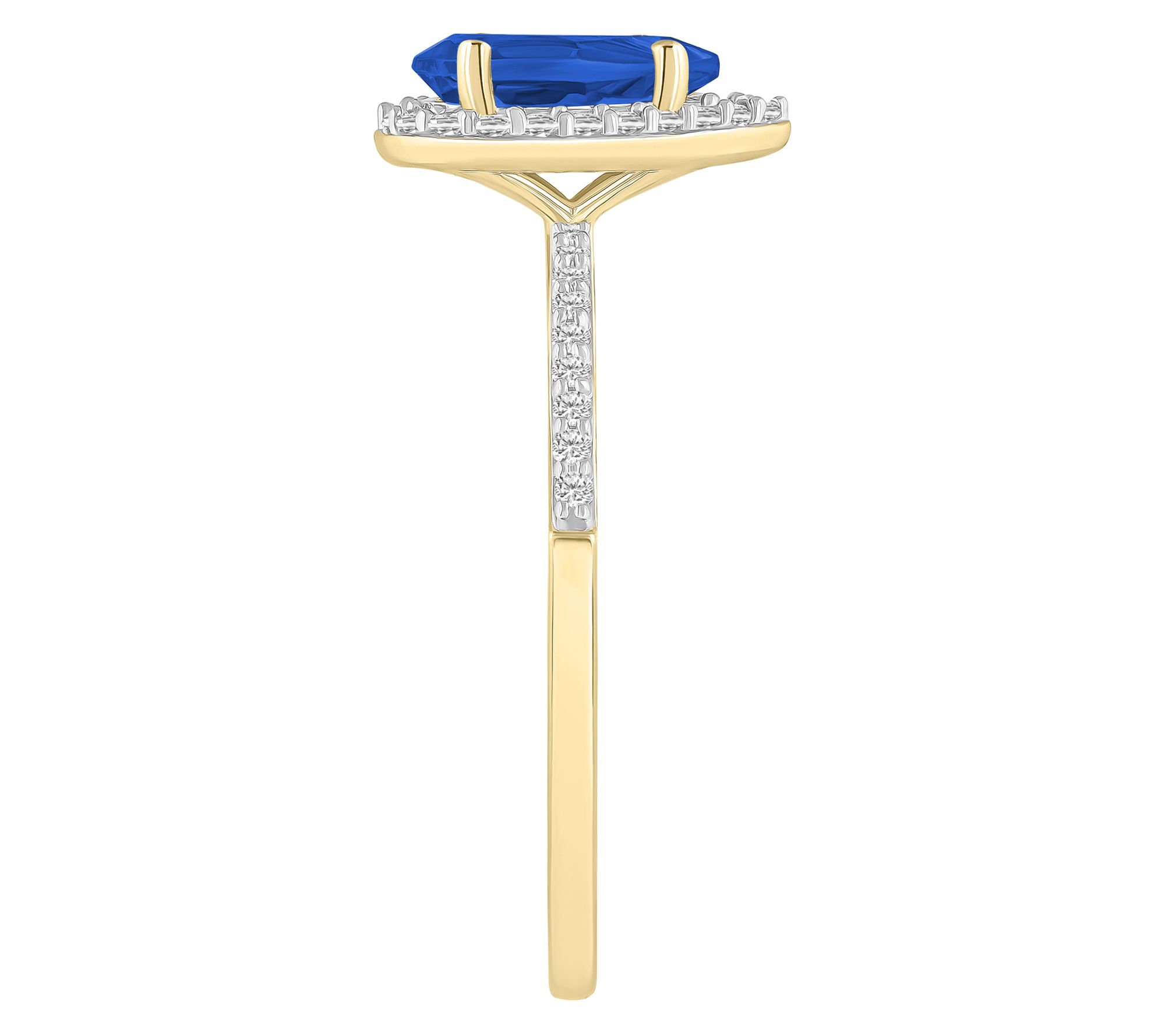 Capture hearts and attention with this dazzling ring. Whether you're stepping out for an elegant evening or simply adding a touch of glam to your daily look, this pear-shaped created gemstone halo ring sets the stage for any occasion. From Affinity Gems.