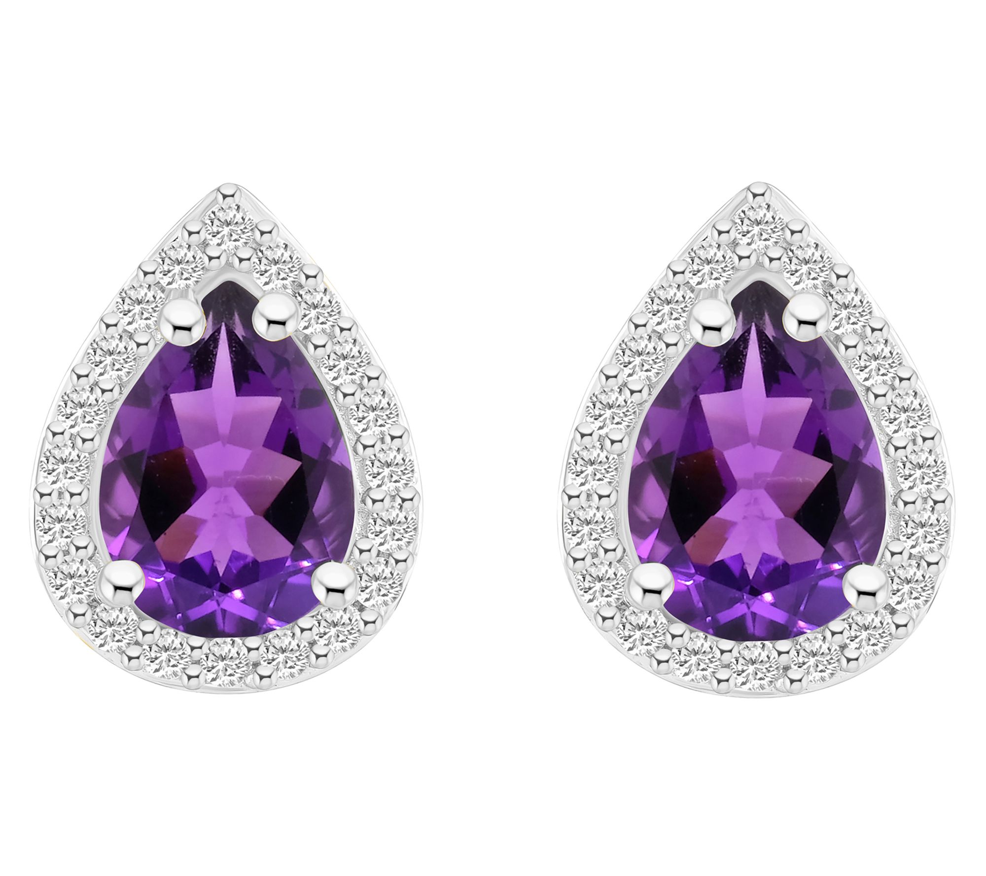 Attractively designed for every occasion, these pear-cut earrings feature gemstones surrounded by luminous created white sapphire halos. From Affinity® Gems.