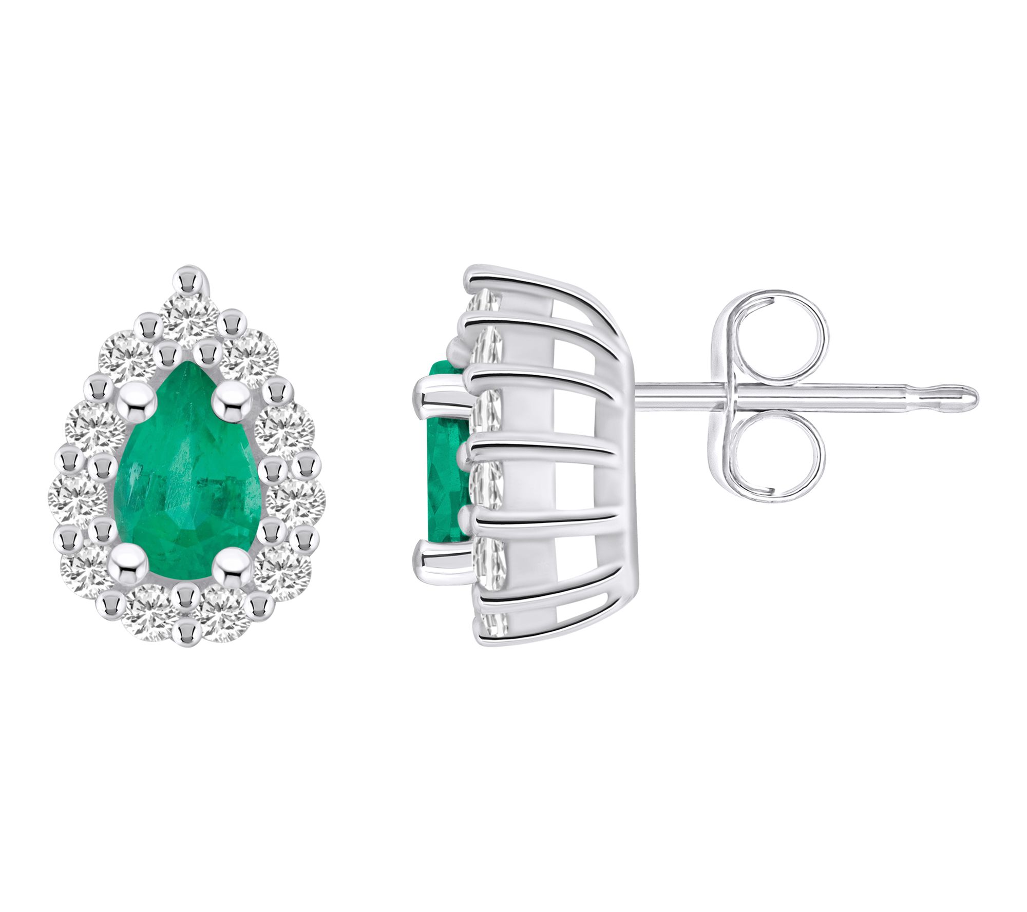 Sparkle more! These earrings feature a stunning pear-shaped gemstone, beautifully surrounded by a glimmering diamond halo. Let them become your go-to for daily shimmer. From Affinity® Gems.