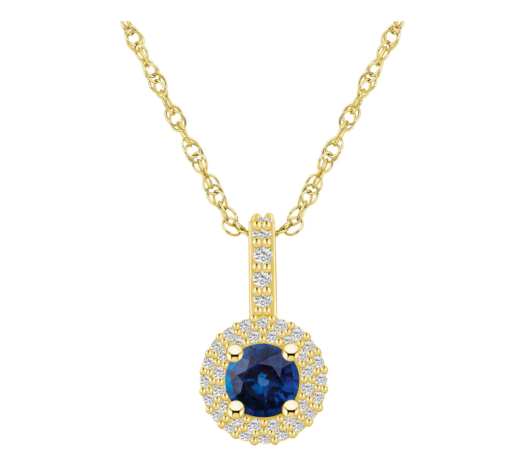 Elevate your elegance with the Affinity Gems 14K white gold round gemstone and diamond pendant. This exquisite piece features a stunning round gemstone surrounded by a sparkling diamond halo. From Affinity Gems.