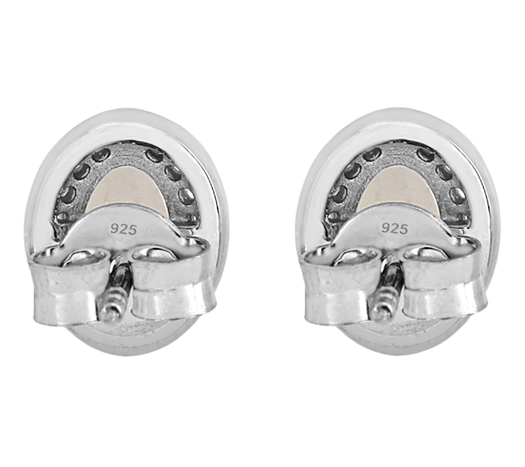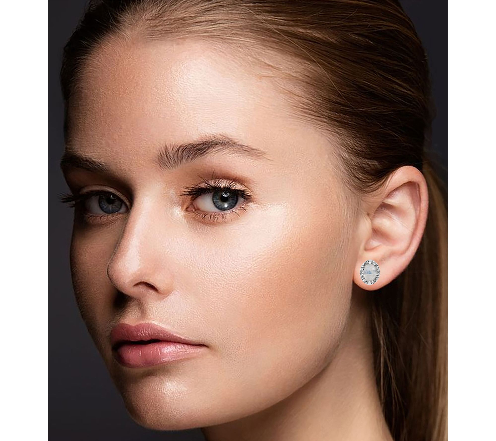 Bring a timeless touch of elegance to your ensemble with these luminous stud earrings from Affinity Gems. Crafted in polished 925 sterling silver and finished with a luxe platinum plating, each earring features a dreamy oval cabochon of genuine rainbow moonstone -- known for its ethereal glow and unique shimmer. Sparkling natural white zircon stones, totaling 0.25 carat weight, are expertly round-cut and prong-set to accentuate the moonstone's captivating beauty. From Affinity® Gems.