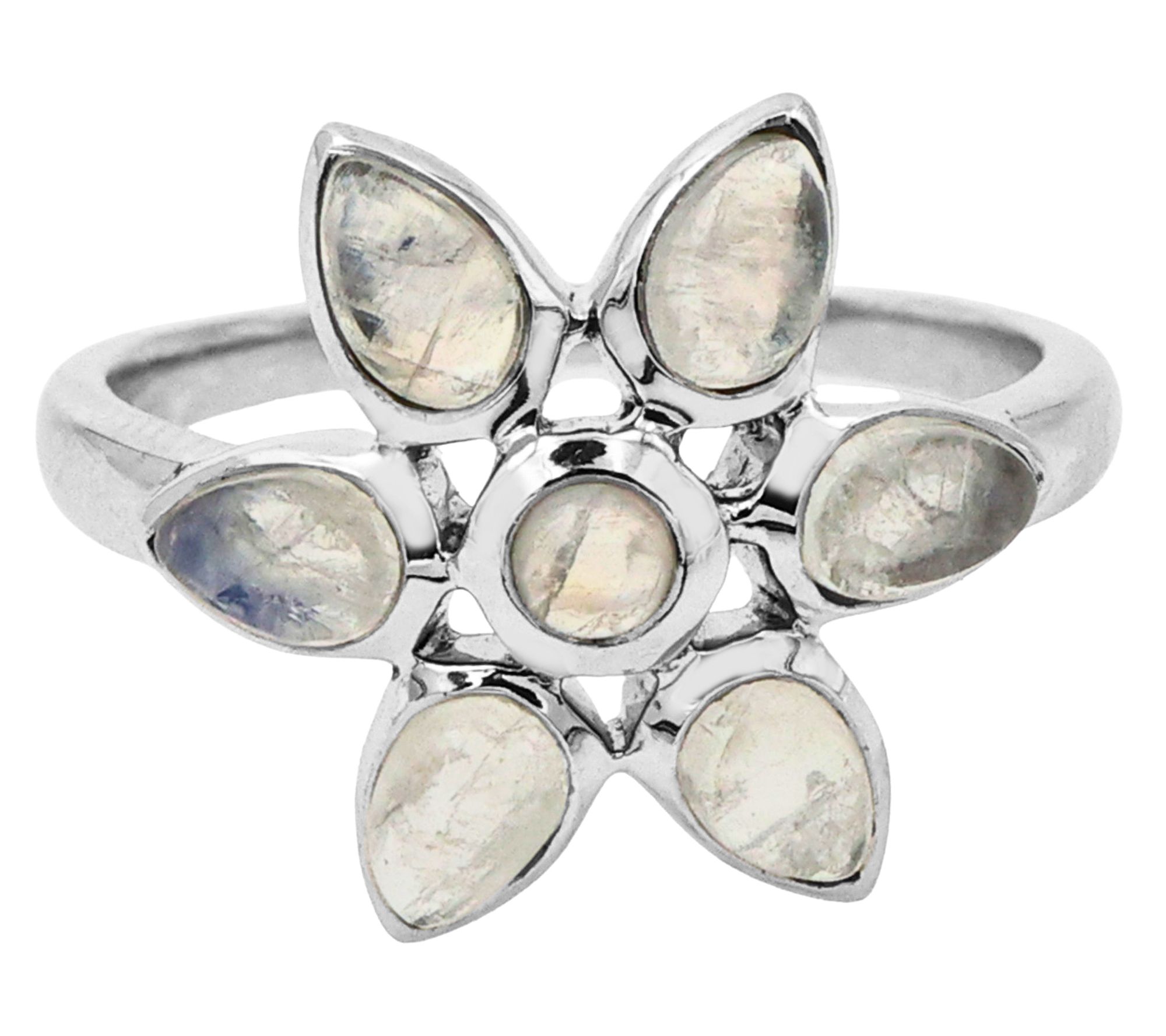 Affinity Gems Rainbow Moonstone Floral Ring, Sterling