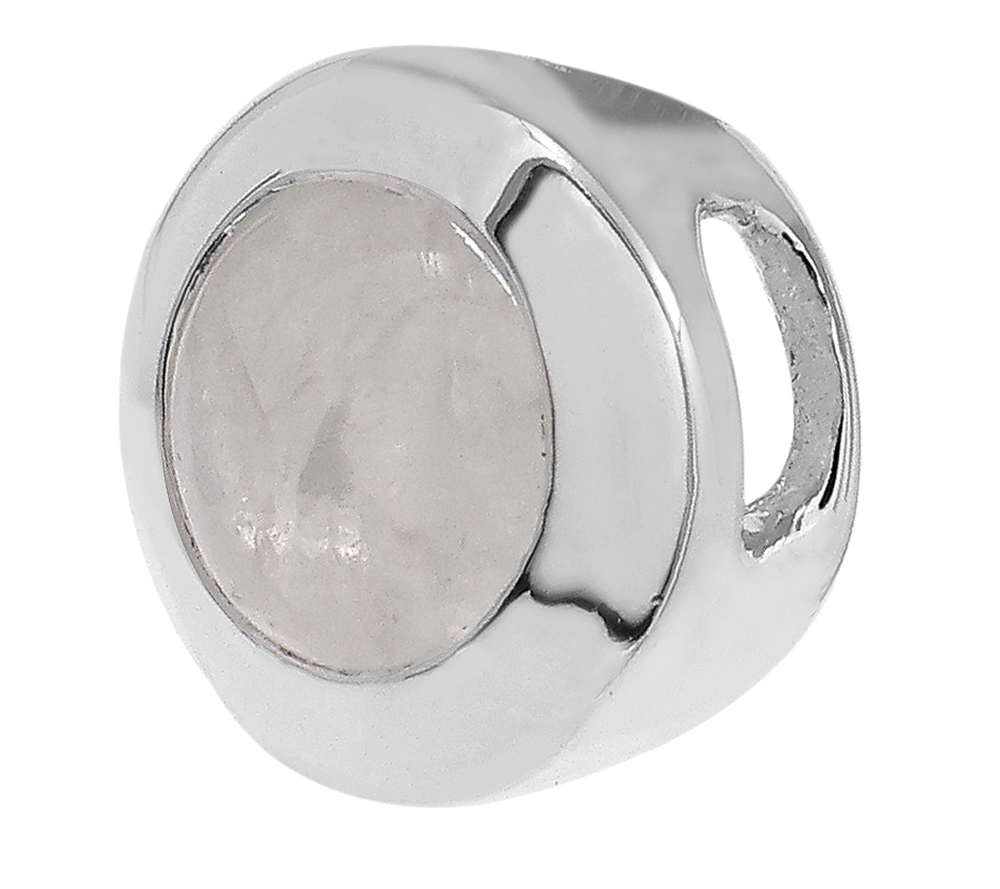 Round cabochon rainbow moonstone in bezel setting; high-polish finish; solitaire style; slide pendant