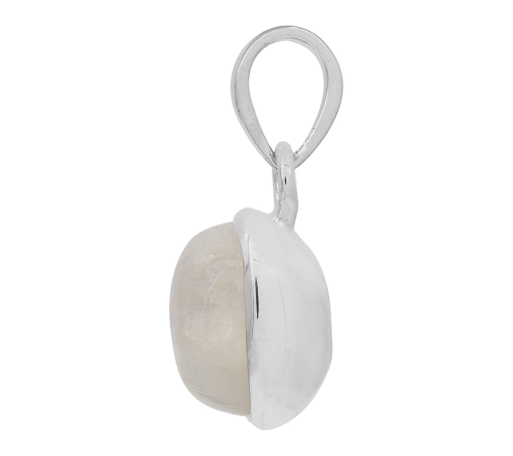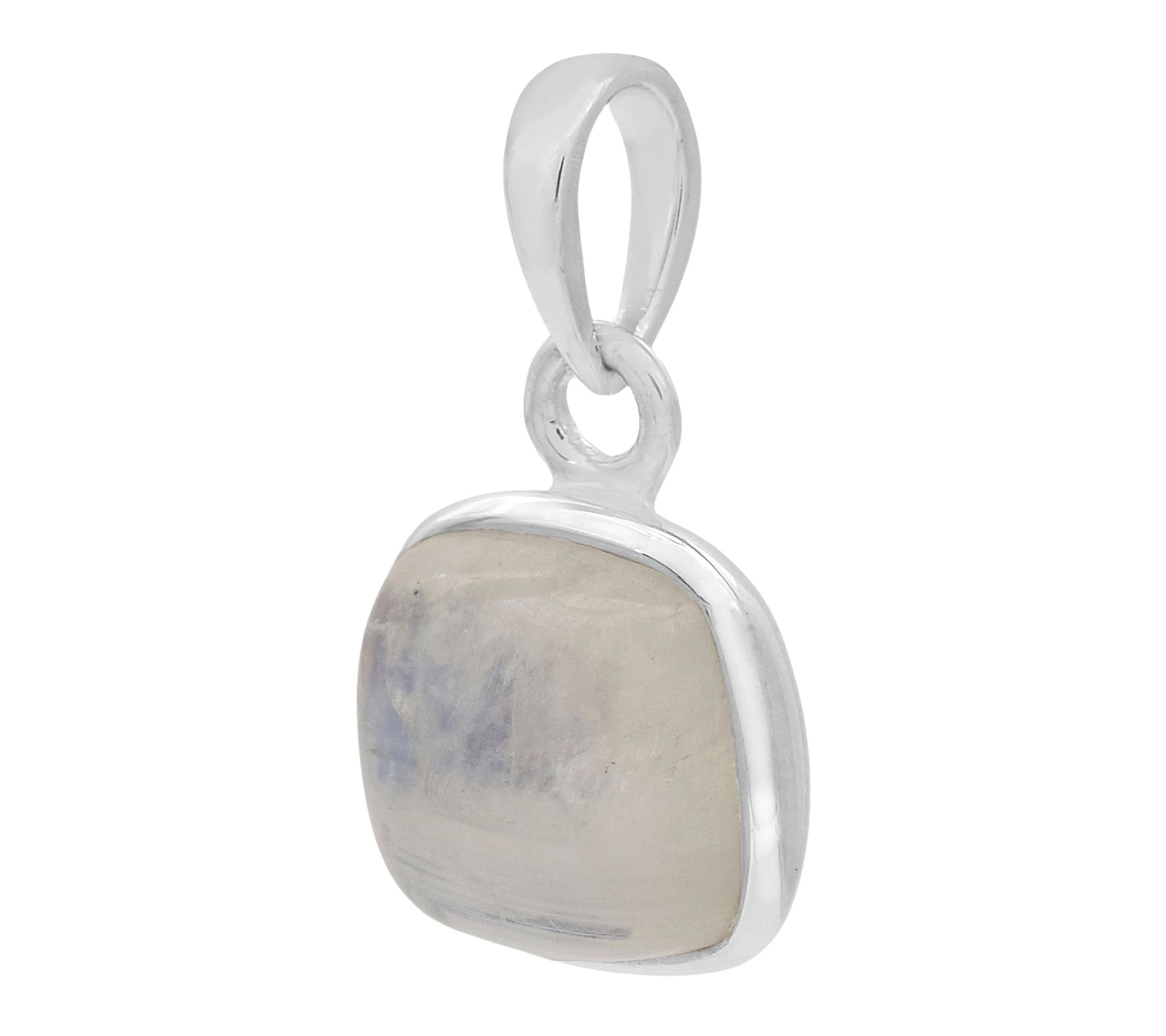 Embrace the luminous charm of a rainbow moonstone solitaire pendant, beautifully cushion-cut and set in silky platinum-plated sterling silver. The graceful slide design glides effortlessly on your favorite chain, adding a subtle glow that's suited for both everyday wear and special occasions. From Affinity® Gems.