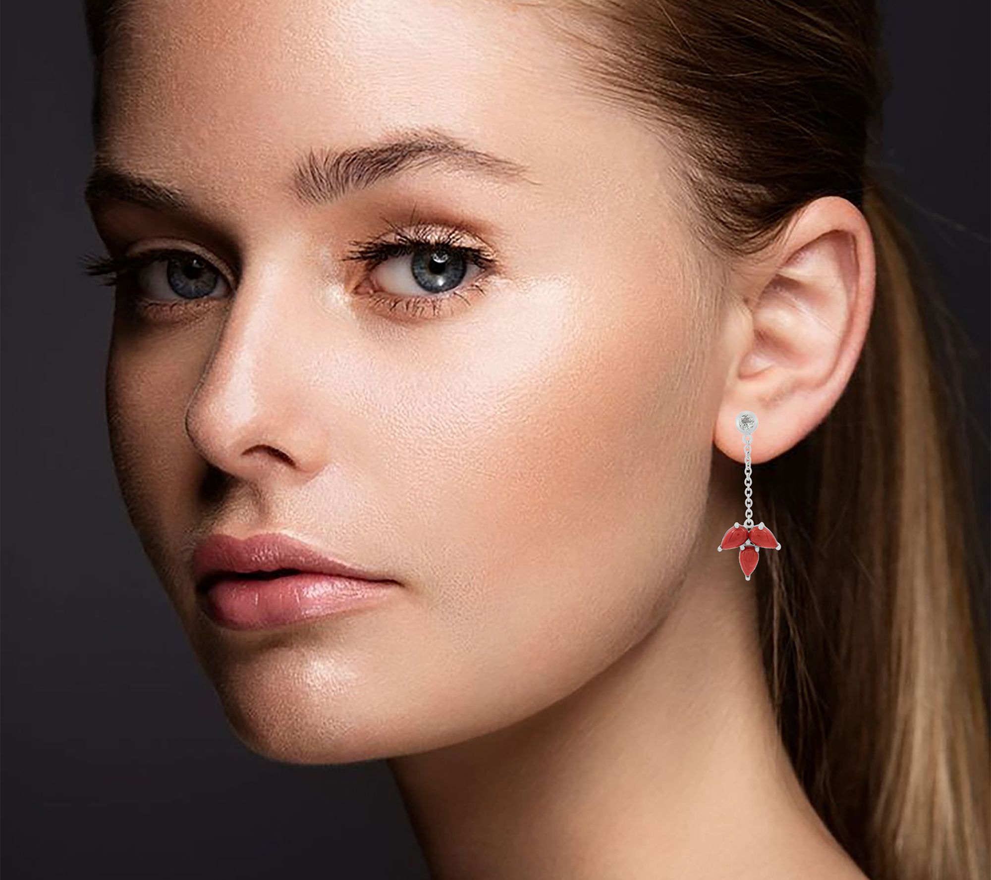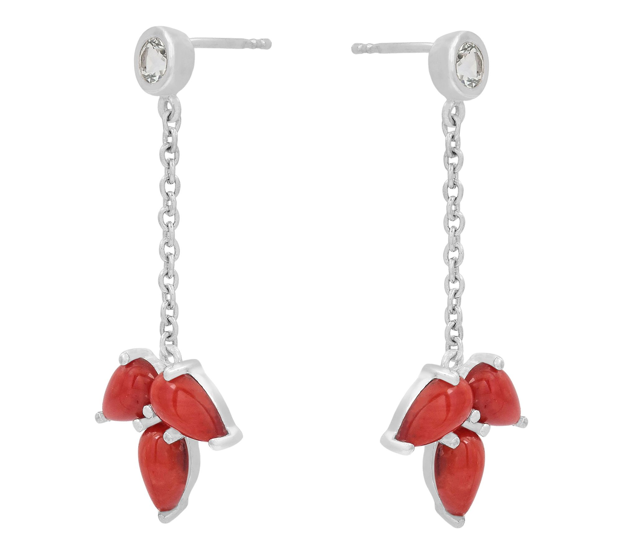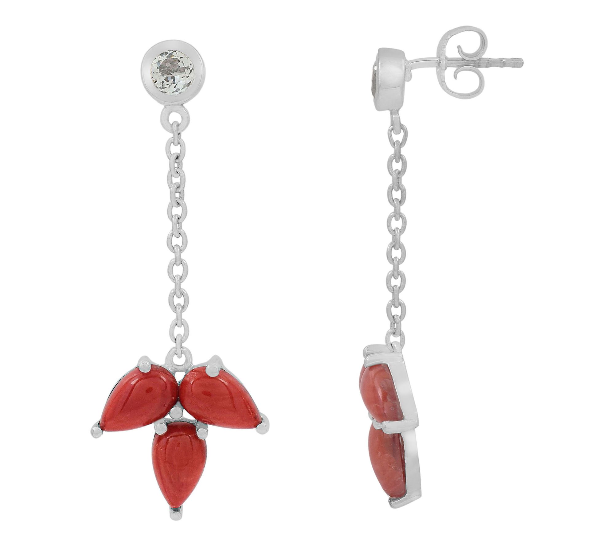 Whether you're dressing up for a special occasion or adding a vibrant accent to your daily look, these dangle earrings bring lively color and sophisticated sparkle to every moment. Prong-set red-dyed bamboo coral pairs beautifully with white topaz, making them a striking choice for evenings out or brunch with friends. From Affinity® Gems.