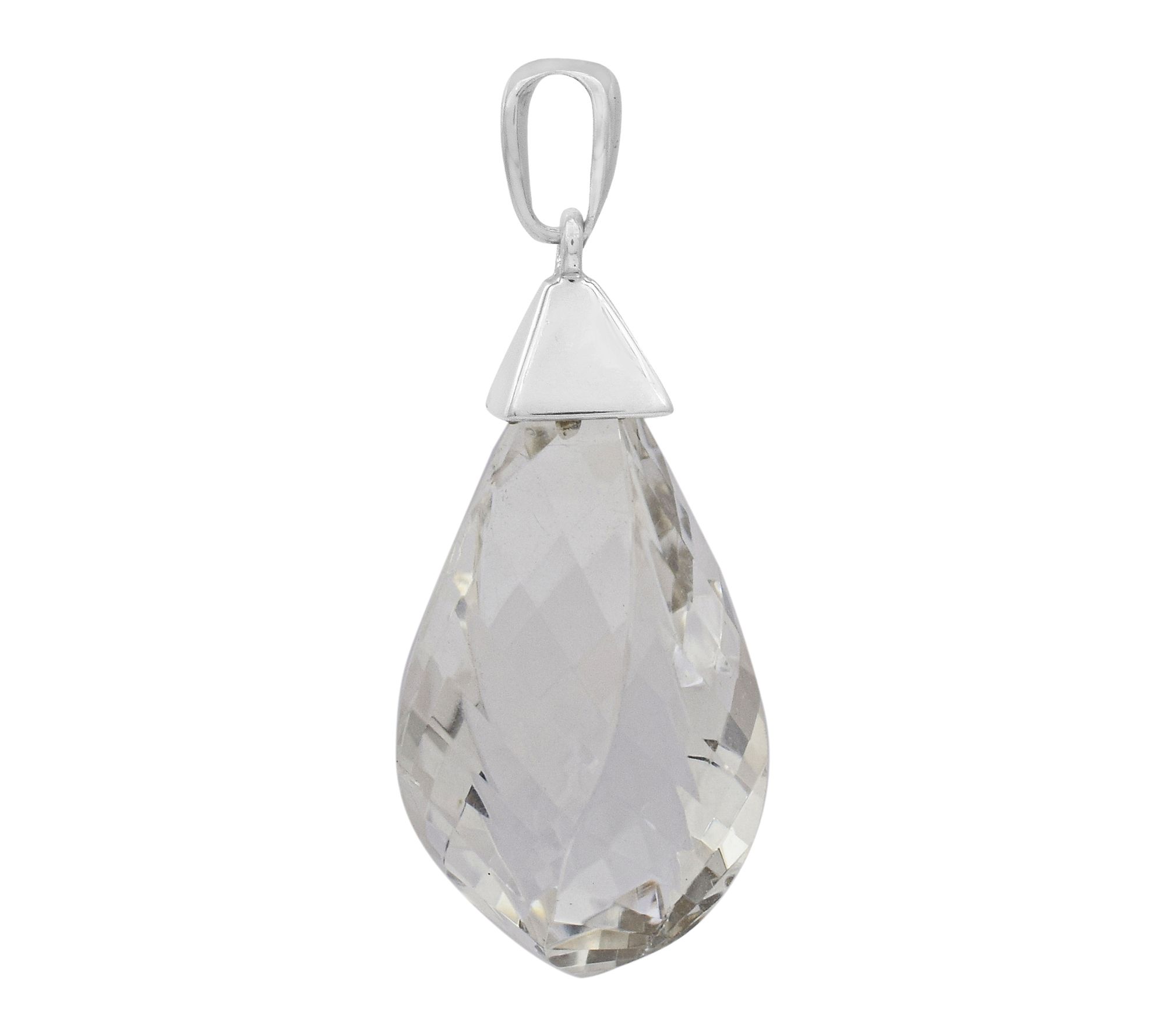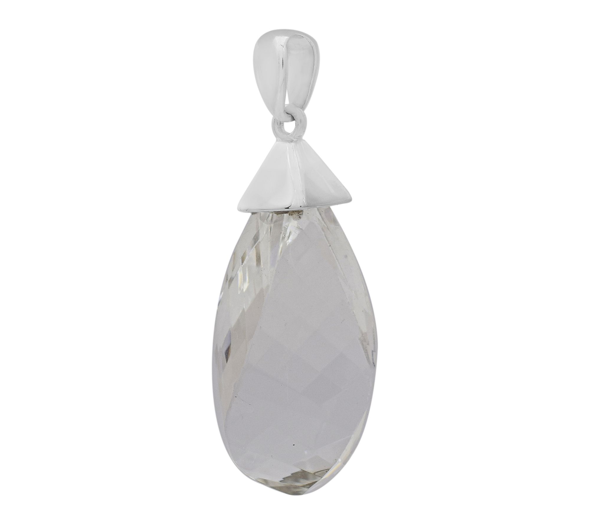 Step out in elegance and let this sparkling rock crystal drop pendant catch the light with every movement. Featuring a faceted bead set in platinum-plated sterling silver, it adds radiant charm to daytime looks or luminous glow for special occasions. From Affinity® Gems.